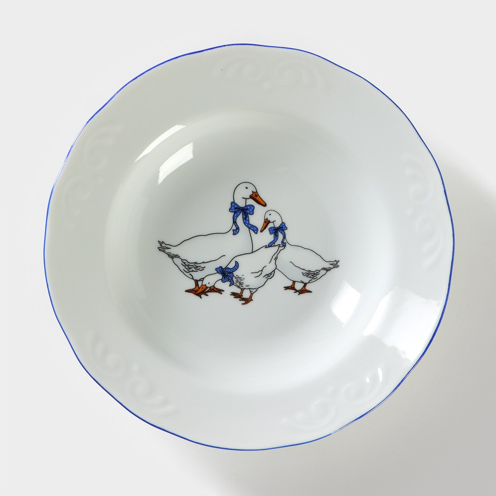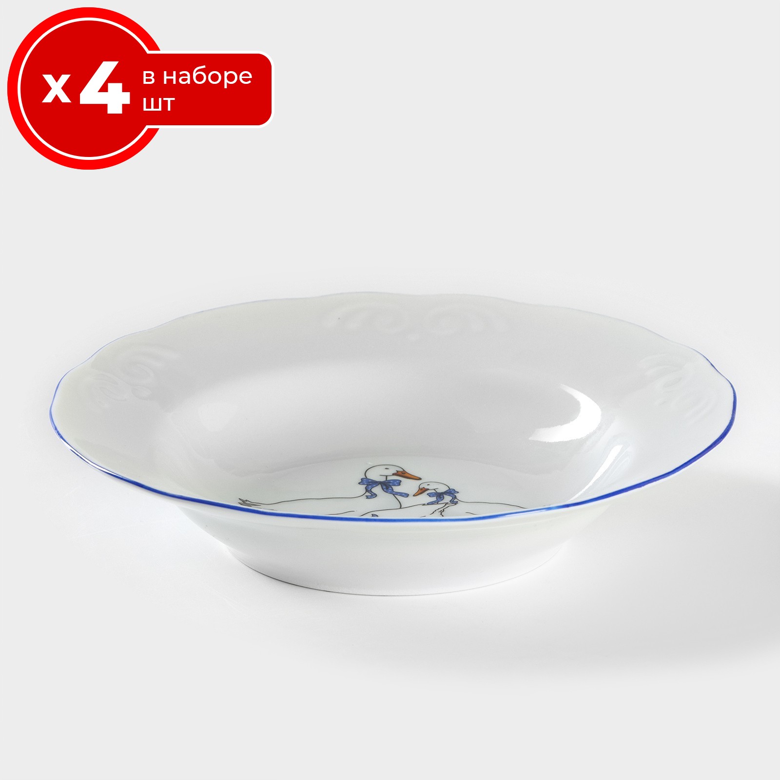 Набор тарелок 4 шт глубоких суповых 20 см на 4 персоны добрушский фарфоровый завод гуси, фарфор