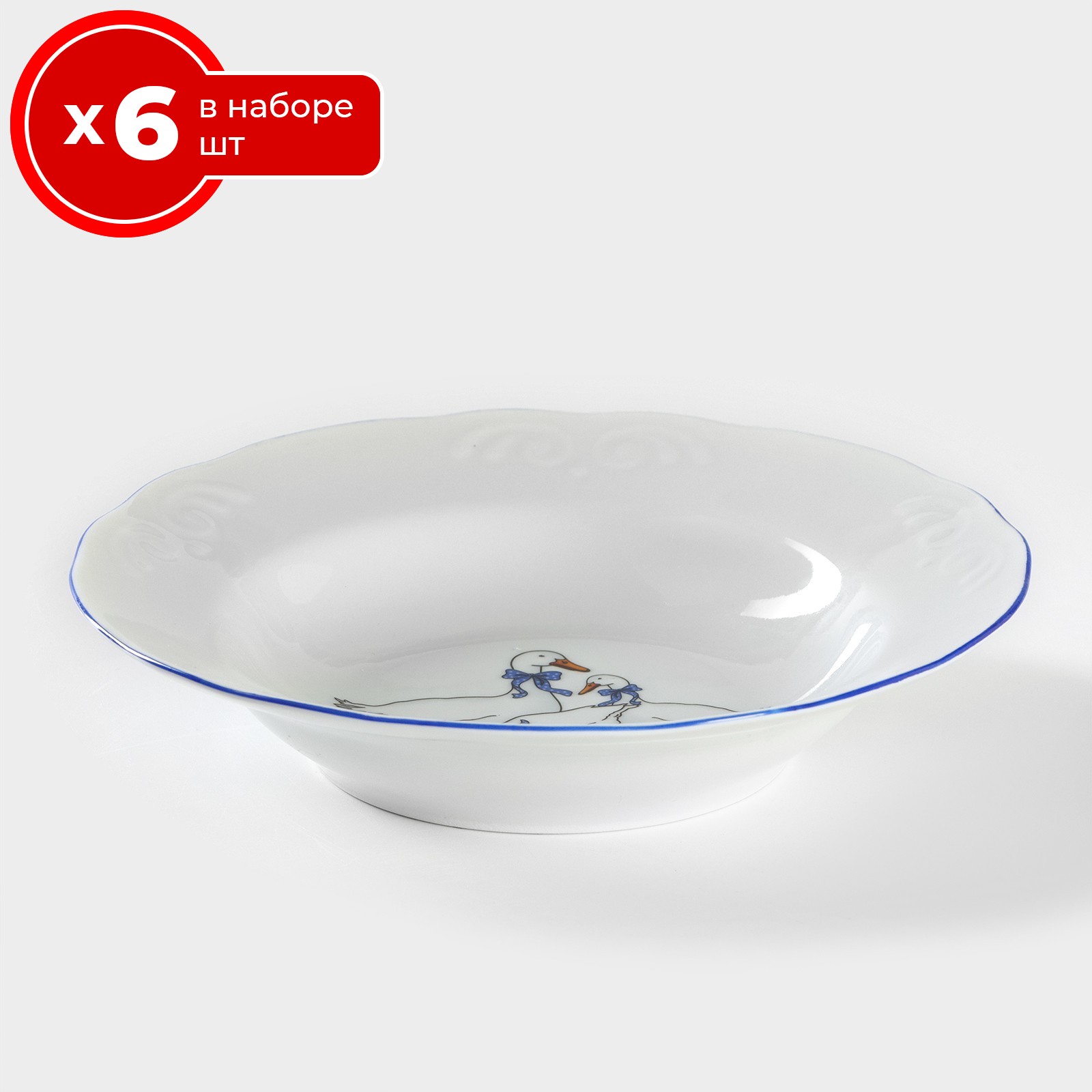 Набор тарелок 6 шт глубоких суповых 20 см на 6 персон добрушский фарфоровый завод гуси, фарфор