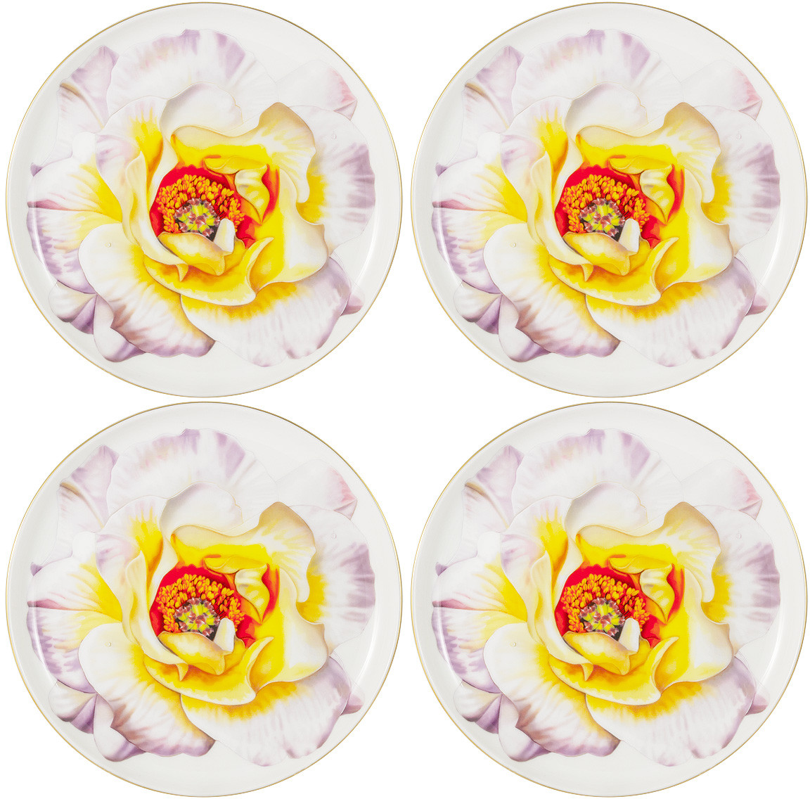 Набор тарелок 4 шт десертных закусочных 19 см на 4 персоны Anna Lafarg Emily Flowers, костяной фарфор, мелкие
