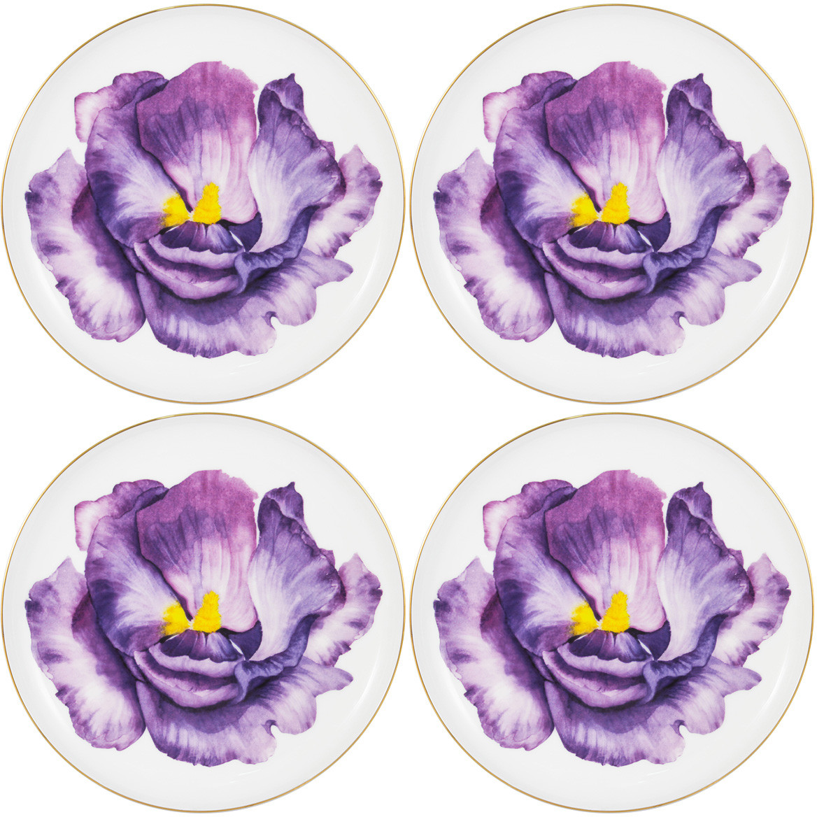 Набор тарелок 4 шт десертных закусочных 19 см на 4 персоны Anna Lafarg Emily Flowers, костяной фарфор, мелкие