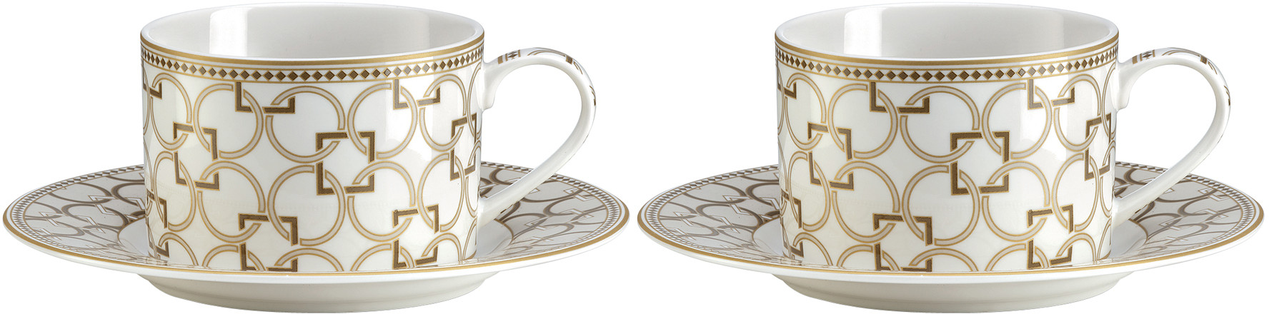 Чайный набор на 2 персоны Pozzi Milano 1876 Deco, сервиз 4 предмета: 2 шт чашки 220 мл и блюдца из фарфора, подарочный