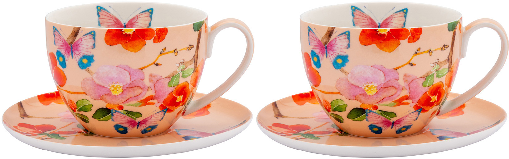 Чайный набор на 2 персоны Maxwell & Williams экзотика, сервиз 4 предмета: 2 шт чашки 400 мл и блюдца из фарфора, подарочный
