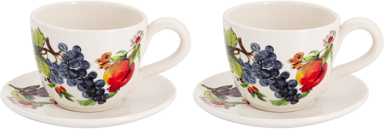 Чайный набор на 2 персоны Home & Style Tutti Frutti, сервиз 4 предмета: 2 шт чашки 400 мл и блюдца из керамики, подарочный