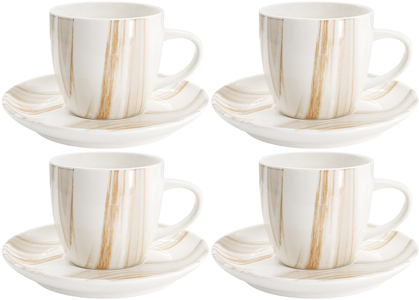 Чайный набор на 4 персоны Home & Style The Royal Marble, сервиз 8 предметов: 4 шт чашки 250 мл и блюдца из фарфора, подарочный