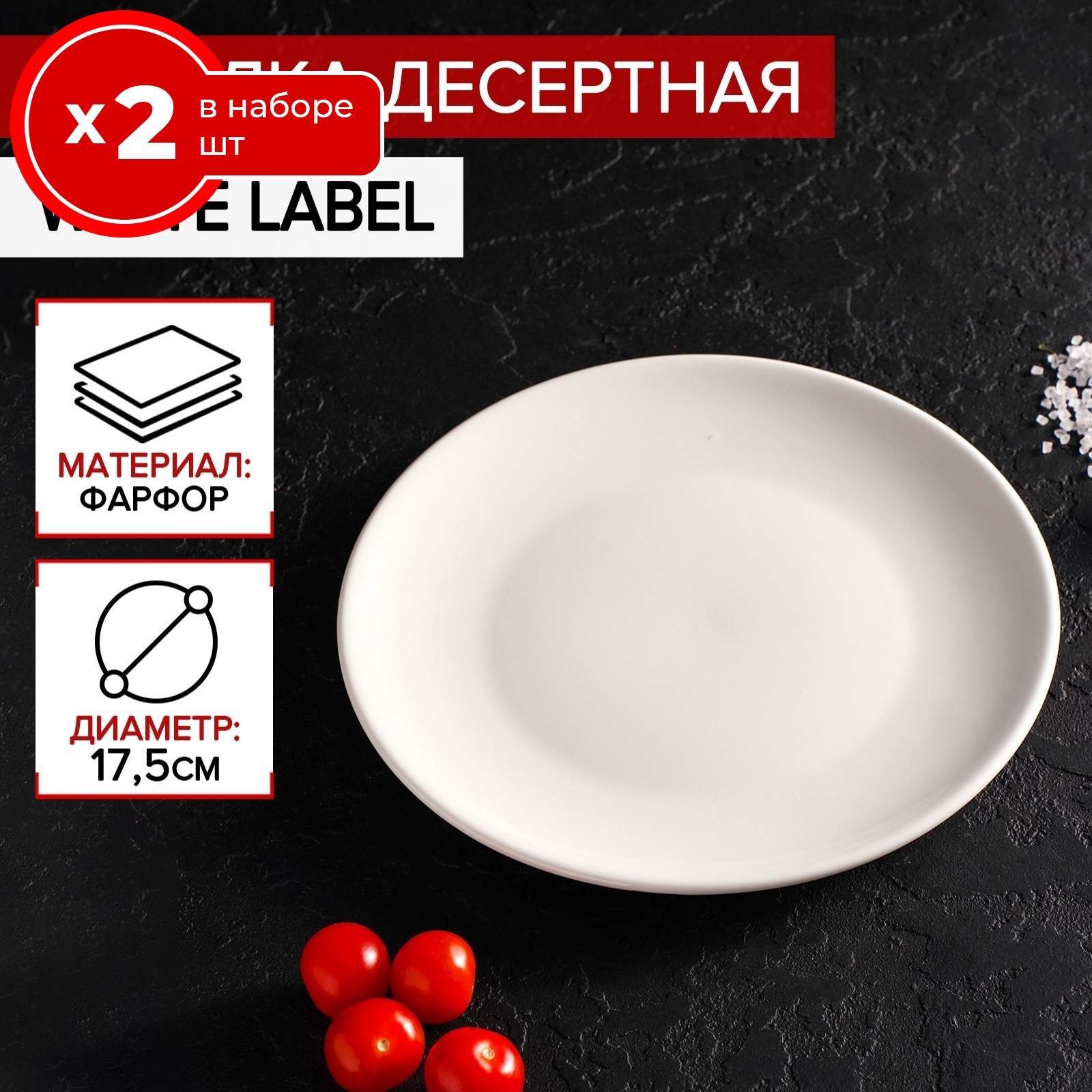 Набор тарелок 2 шт десертных закусочных 17.5 см на 2 персоны доляна White Label, фарфор, мелкие