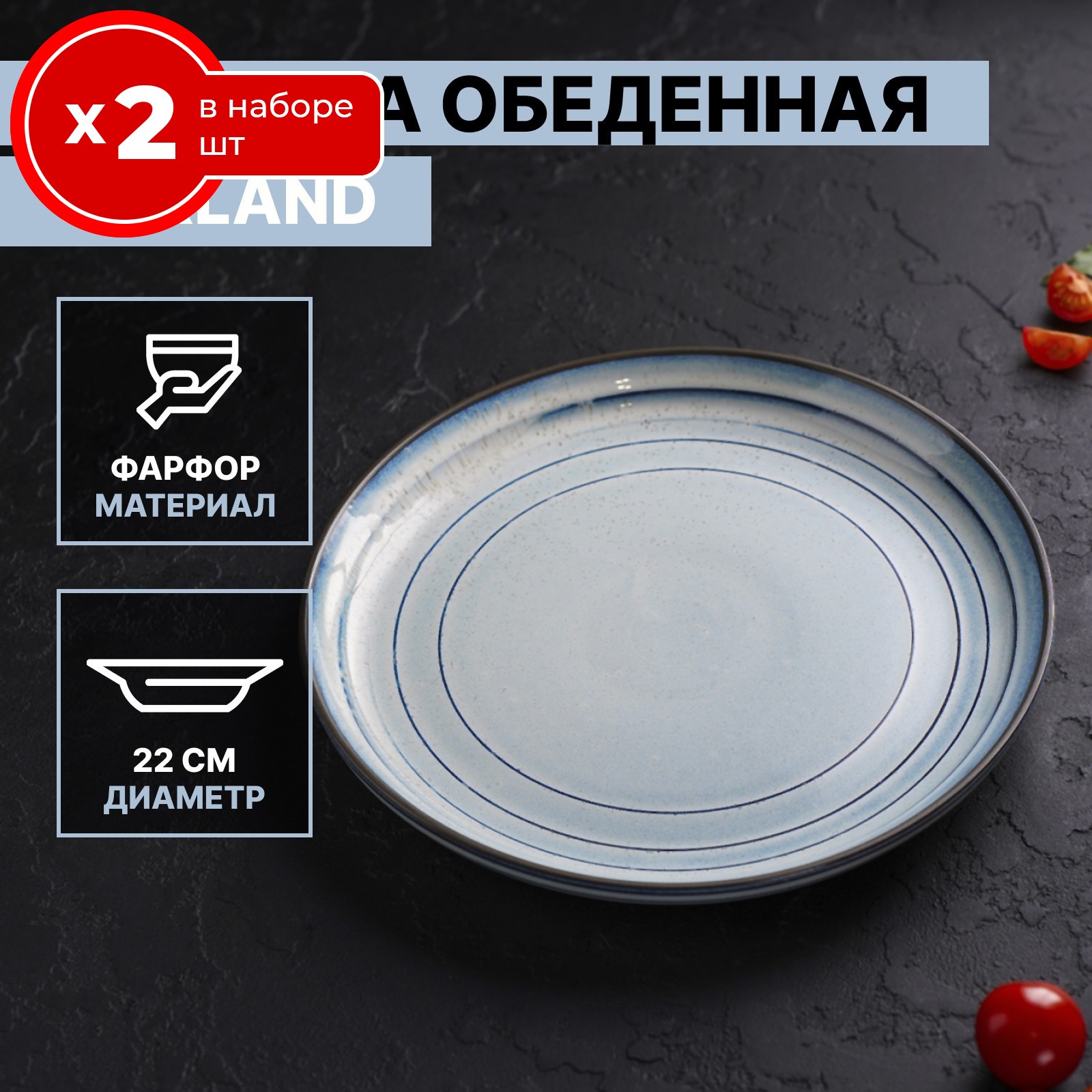 Набор тарелок 2 шт десертных обеденных 22 см на 2 персоны Magistro Garland, фарфор, мелкие закусочные