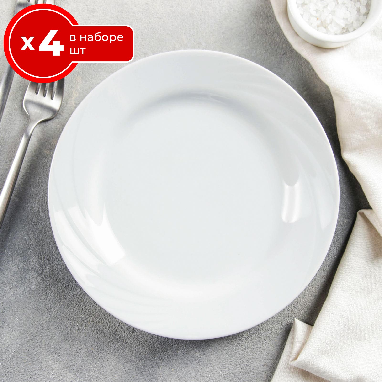 Набор тарелок 4 шт десертных обеденных 20 см на 4 персоны добрушский фарфоровый завод бельё.голубка, фарфор, мелкие закусочные