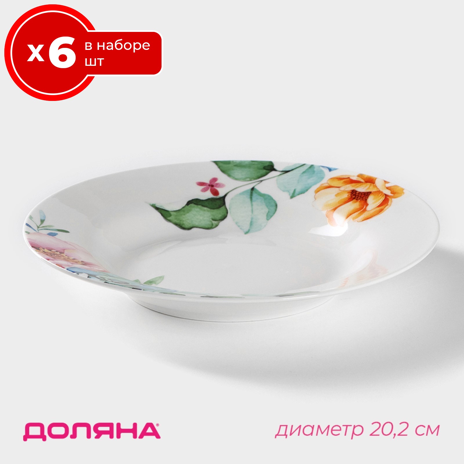 Набор тарелок 6 шт глубоких суповых 20.2 см на 6 персон доляна пташка, новый костяной фарфор