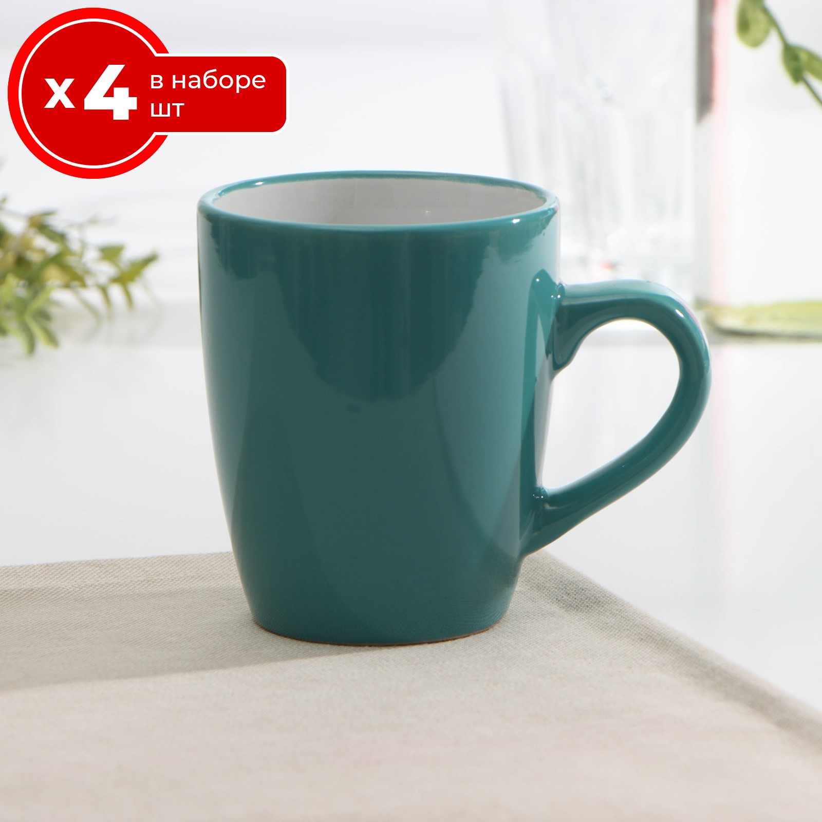 Набор из 4 кружек доляна 360 мл, керамика, чашки для чая и кофе 4 шт