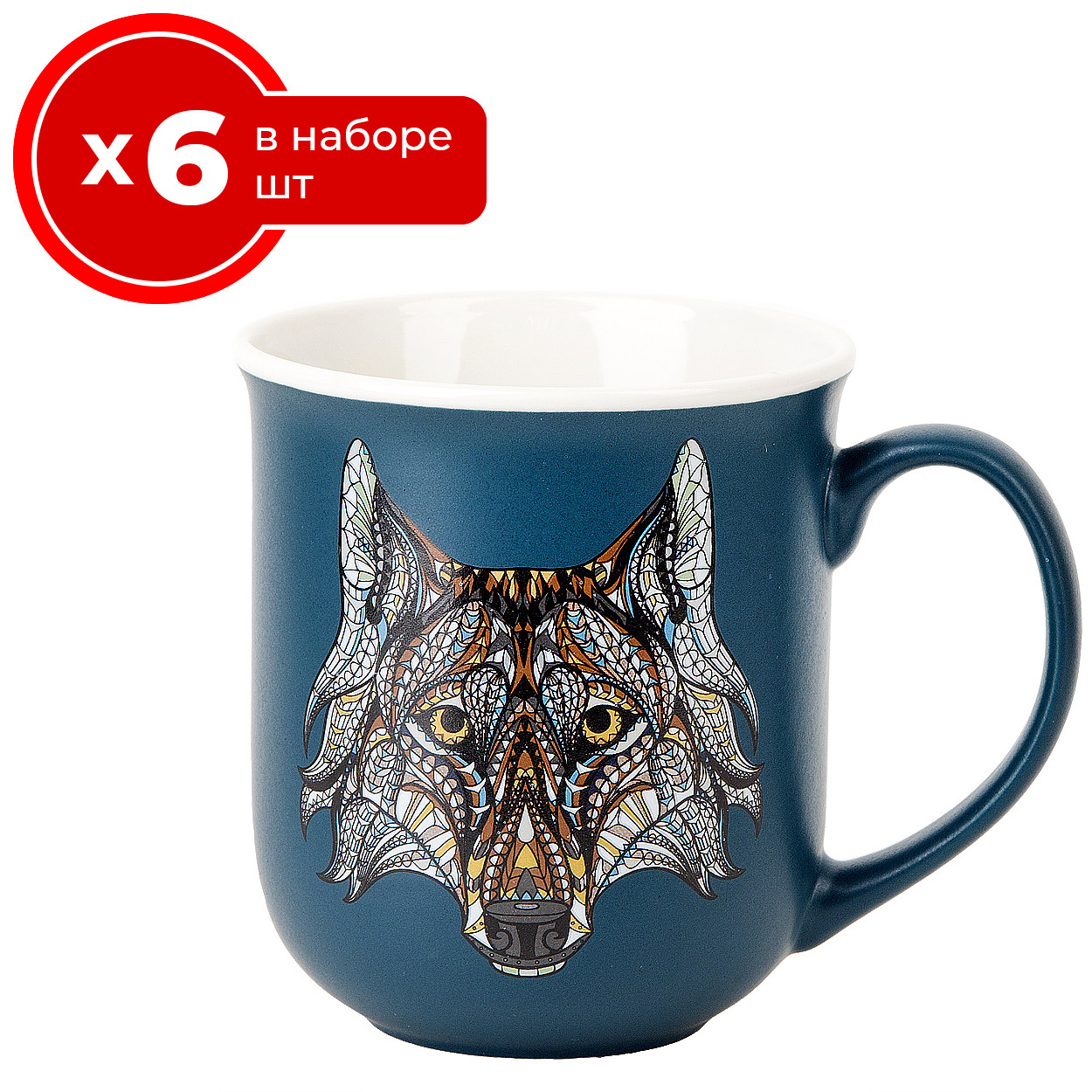 Набор из 6 кружек Nouvelle волк 380 мл, фарфор, чашки для чая и кофе 6 шт
