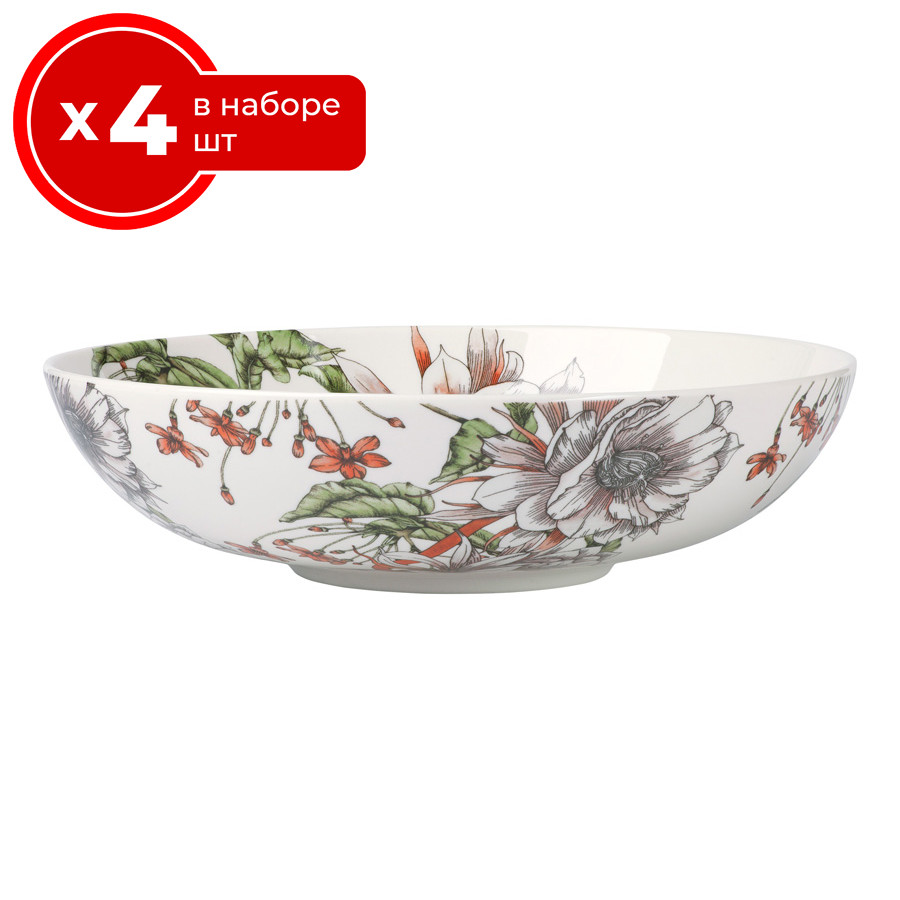 Набор салатников 4 шт Maxwell & Williams тропические цветы 18.5 см, фарфор, глубокие тарелки для сервировки стола, блюда