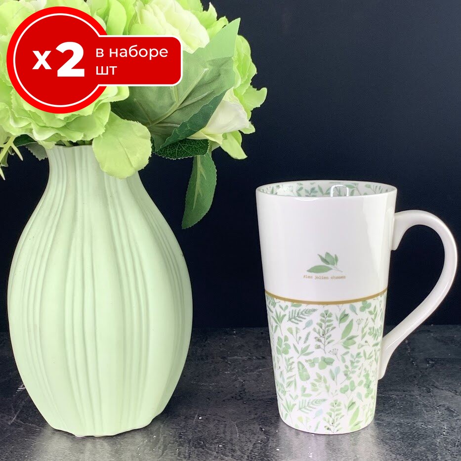 Набор из 2 кружек Lenardi Green Tea 400 мл, фарфор, чашки для чая и кофе 2 шт