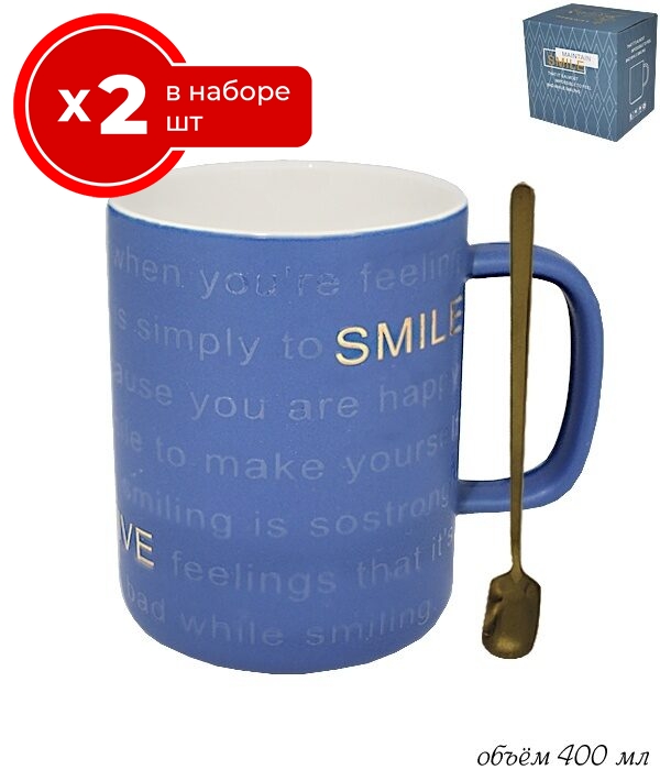 Набор из 2 кружек Lenardi Smile 400 мл, фарфор, чашки для чая и кофе 2 шт