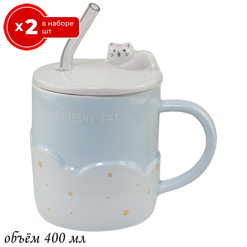Набор из 2 кружек Lenardi Cat 400 мл, фарфор, чашки для чая и кофе 2 шт