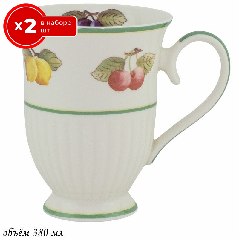Набор из 2 кружек Lenardi фруктовый сад 300 мл, фарфор, чашки для чая и кофе 2 шт