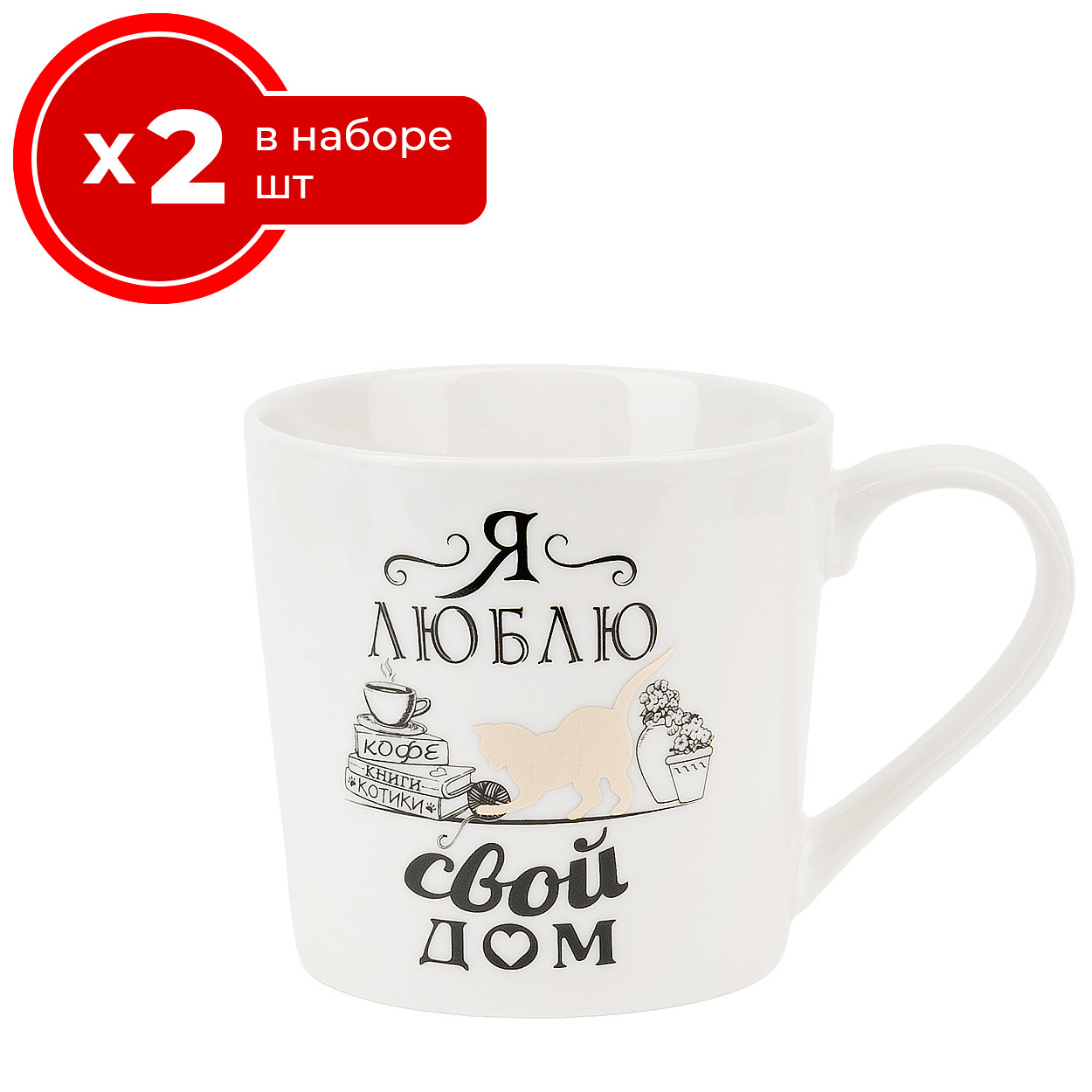 Набор из 2 кружек Nouvelle кошкин дом 375 мл, фарфор, чашки для чая и кофе 2 шт