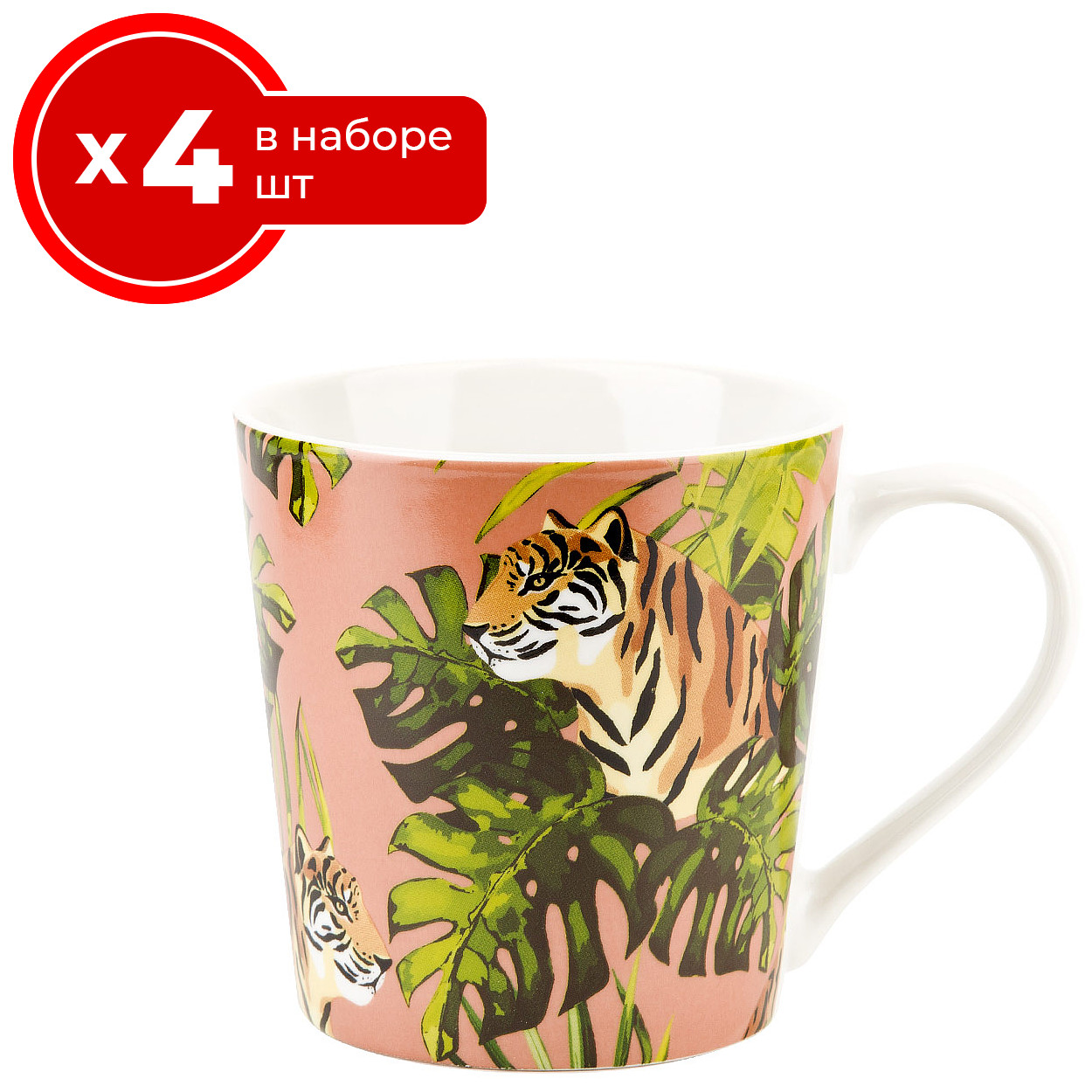 Набор из 4 кружек Nouvelle тропические кошки 390 мл, фарфор, чашки для чая и кофе 4 шт