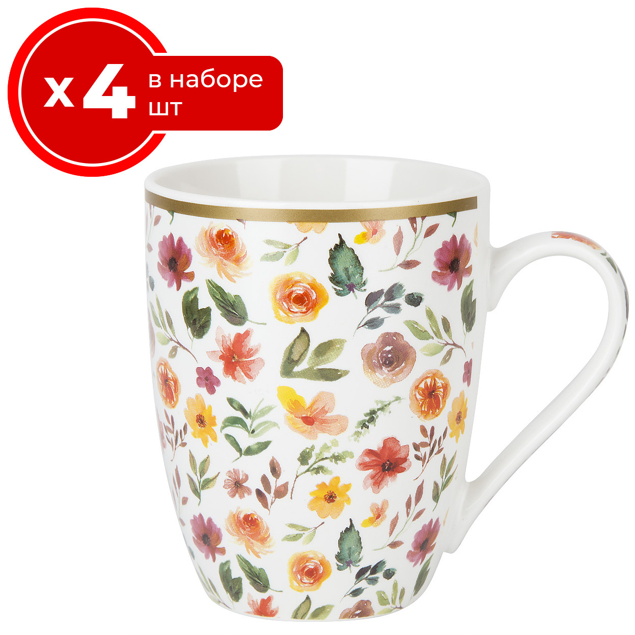 Набор из 4 кружек Nouvelle Floristry 340 мл, фарфор, чашки для чая и кофе 4 шт