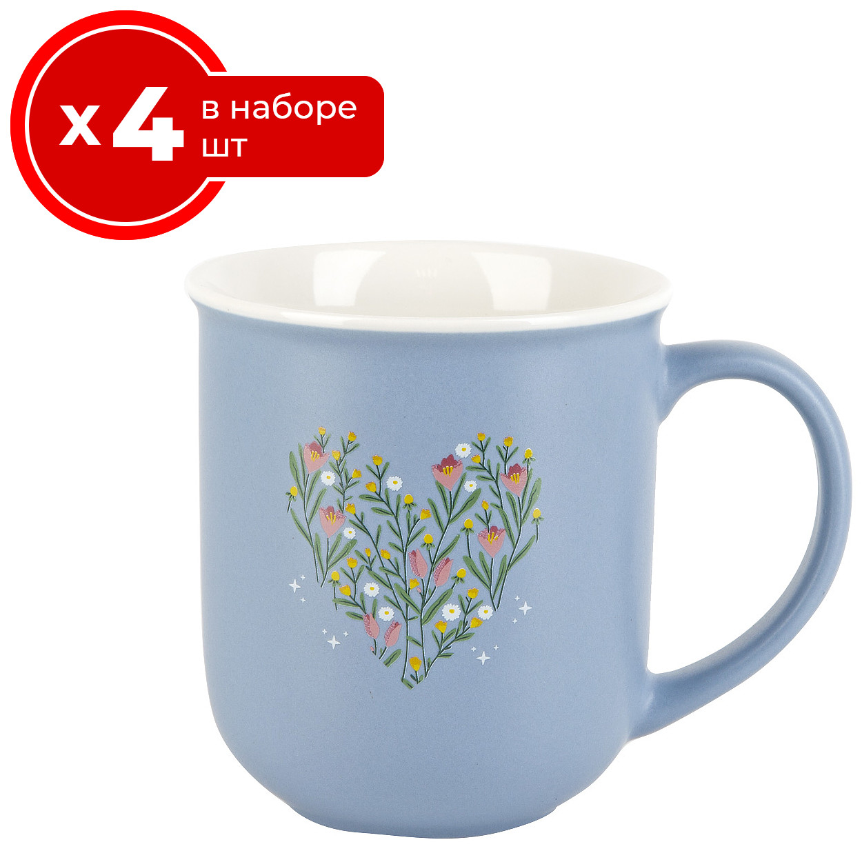 Набор из 4 кружек Nouvelle Home Floristry 410 мл, фарфор, чашки для чая и кофе 4 шт