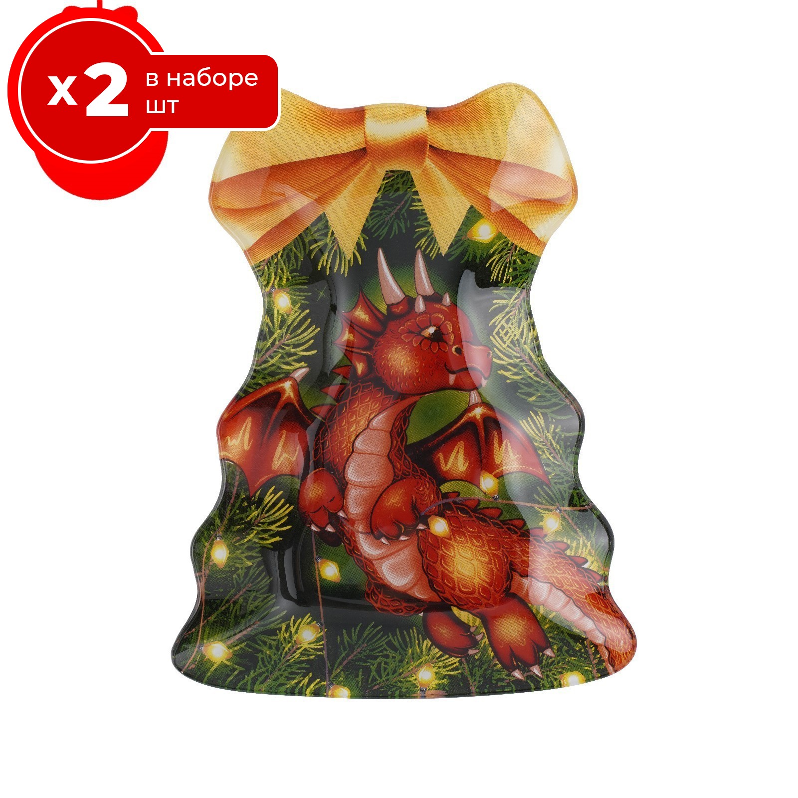 Набор блюд сервировочных фигурных стекло ёлочка с бантом. дракоша для подачи блюд и сервировки стола доляна