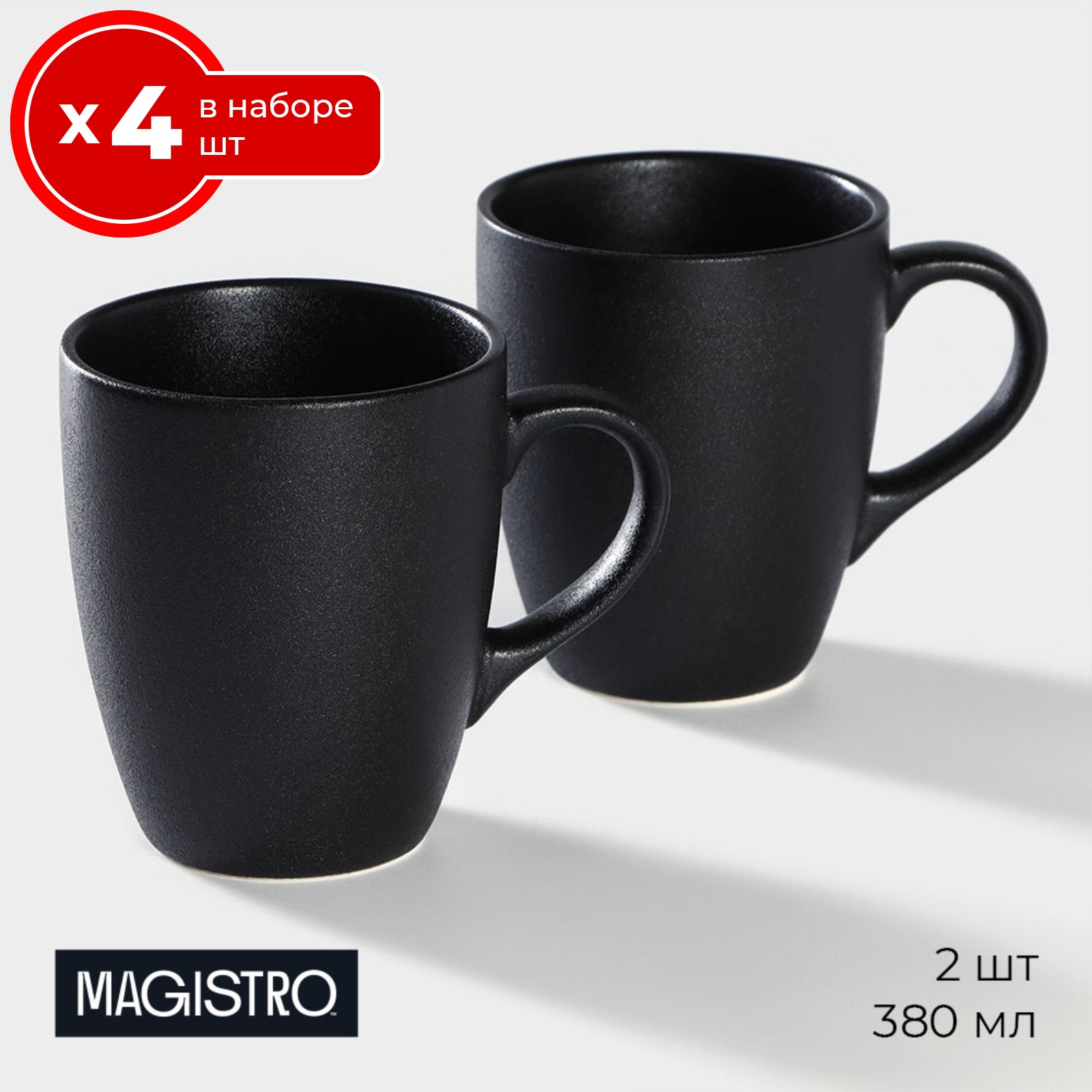 Шт набор из 4 кружек magistro carbon 380 мл, фарфор, чашки для чая и кофе 4 шт. Элегантная и современная, но в то же время сдержанная посуда серии Magistro Carbon покорит вас своей уникальностью! Посуда выполнена из высококачественного фарфора, матовая поверхность которого имитирует естественную фактуру камня благородного чёрного цвета. Каменная поверхность добавляет прочности изделиям, она не царапается, цвет со временем не тускнеет. Предметы из серии ощутимо тяжелее обычных фарфоровых аналогов. Лаконичные блюда, салатники и тарелки с уникальным эффектом идеальны для подачи в заведениях ресторанного типа, подходят для индустрии HoReCa. Изделия из ресторанного фарфора станут достойной альтернативой посуде из стекла и керамики. Можно использовать в СВЧ и посудомоечной машине. Цвет: Чёрный В наборе, шт.: 2 Объём, мл: 380 Тематика: Однотонная Материал: Фарфор Дополнительный аксессуар: Без аксессуаров Можно мыть в посудомоечной машине: Да Можно использовать в СВЧ-печи: Да Текстура: Гладкая Особенности: Без особенностей Матовая поверхность: Да  развернуть описание ▼