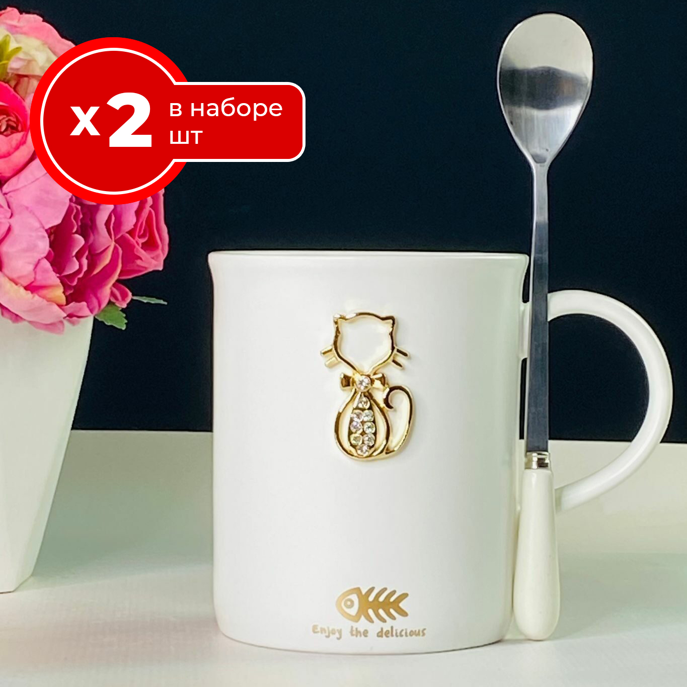 Набор из 2 кружек Lenardi кошка 350 мл, фарфор, чашки для чая и кофе 2 шт