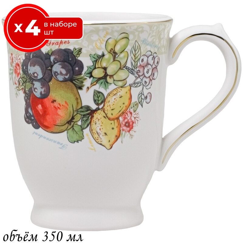 Набор из 4 кружек Lenardi фрукты 350 мл, фарфор, чашки для чая и кофе 4 шт