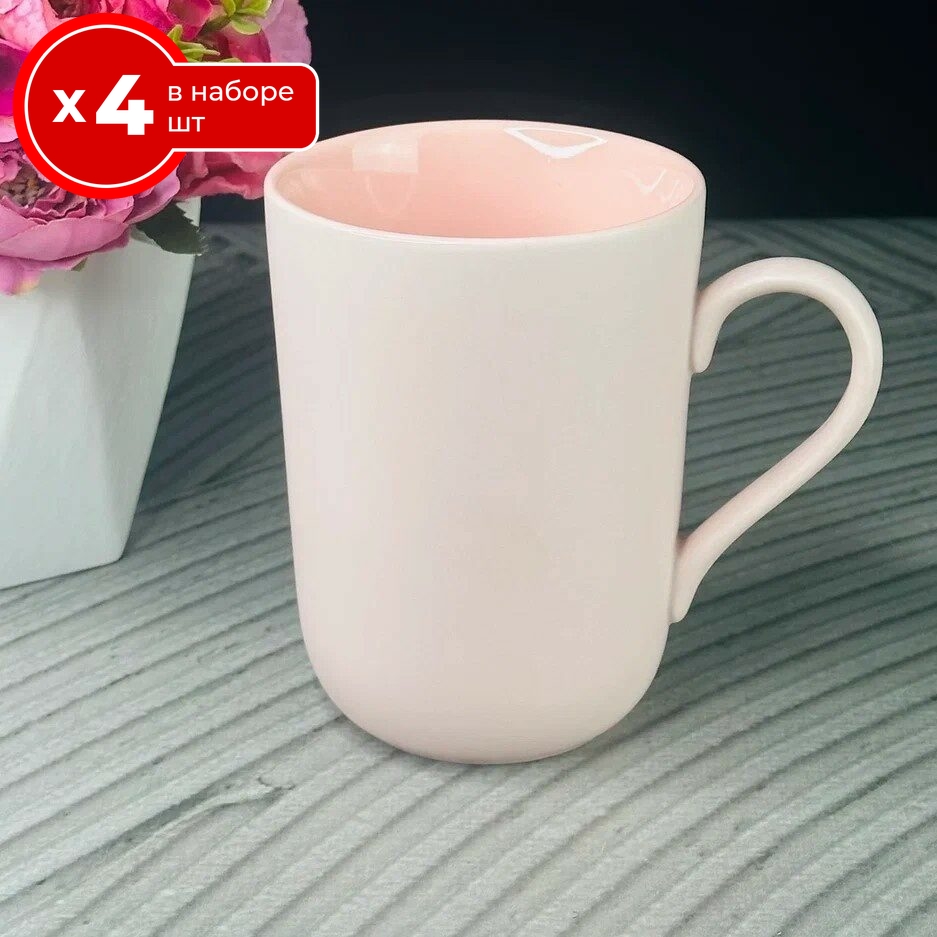 Набор из 4 кружек Lenardi Rose 400 мл, фарфор, чашки для чая и кофе 4 шт