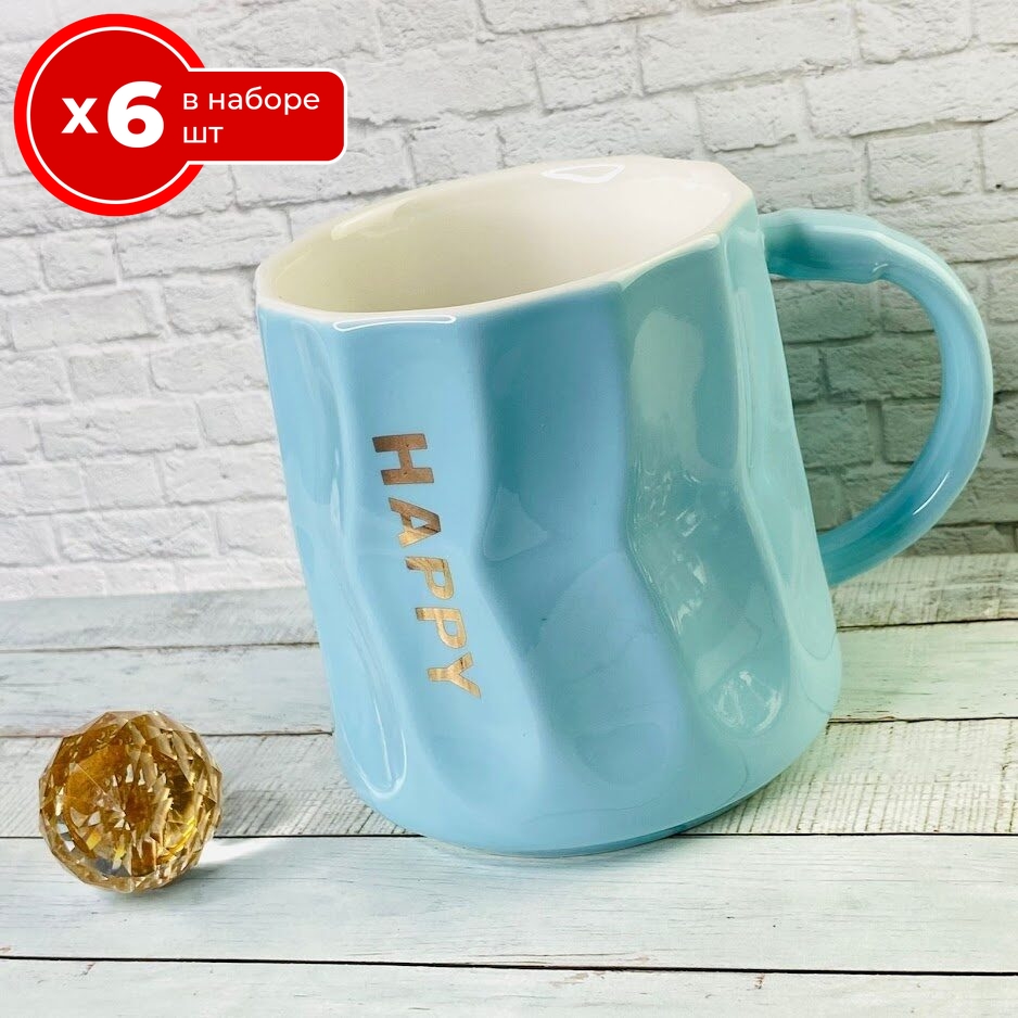 Набор из 6 кружек Lenardi Hello 400 мл, фарфор, чашки для чая и кофе 6 шт