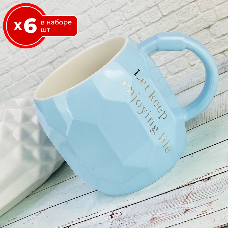Набор из 6 кружек Lenardi Hello 400 мл, фарфор, чашки для чая и кофе 6 шт