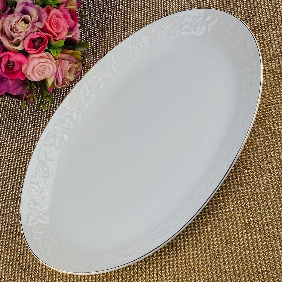 2шт овальное блюдо 32см белая роза в под.уп. фарфор