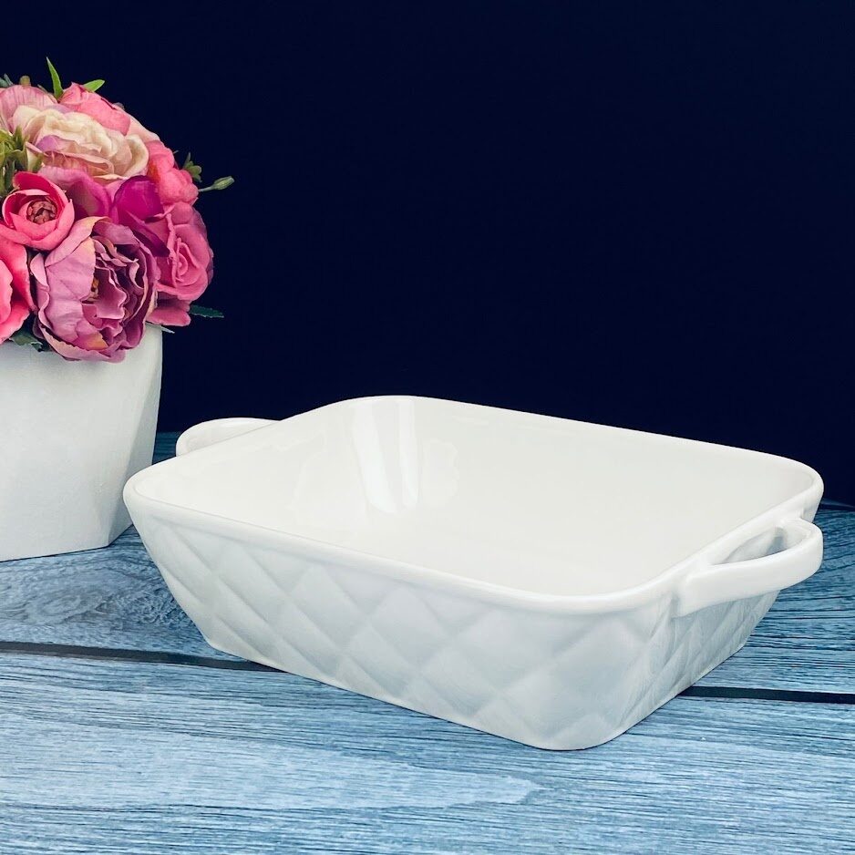 2шт прямоугольное блюдо для запекания 24см в под.уп. фарфор. Жаропрочный фарфор - серия представлена в виде прямоугольных, квадратных, овальных и круглых блюд разного объема, круглых кастрюль и порционных формочек. Посуду можно использовать в духовке и микроволновой печи. Пища при этом сохраняет естественный вкус и аромат. Посуду можно мыть в посудомоечной машине, а качественная и прочная глазурь защищает блюда от царапин ножа и вилки. ВНИМАНИЕ! Температура приготовления пищи в посуде из фарфора не должна превышать t220C градусов. Категорически запрещается ставить посуду на конфорки электрической плиты или на открытое пламя. Посуду, в которой находились замороженные или охлажденные продукты, не следует сразу из холодильника помещать в горячую духовку.