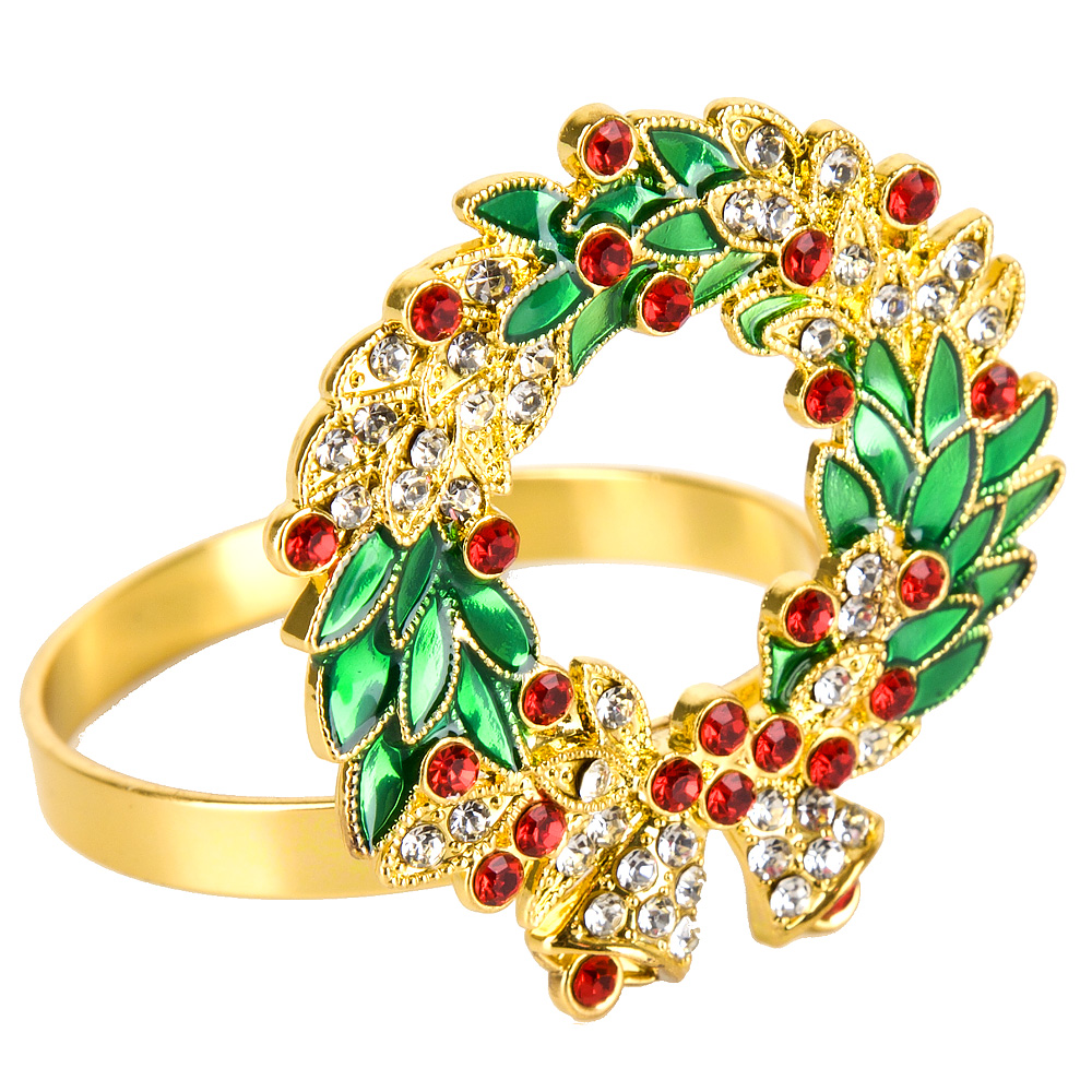 4шт кольцо для салфеток рождественский венок 4х4,5х4см (min12) (упаковочный пакет)