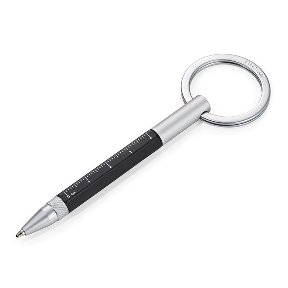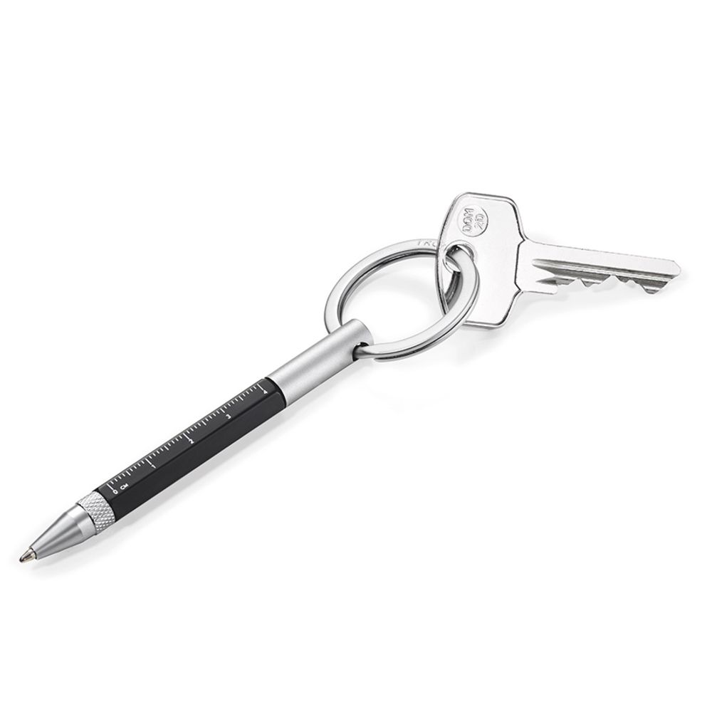 Ручка-брелок construction micro, черный. Размеры ручка: 8,8x0,9; кольцо: диаметр 3,5 см Материал металл Вес (1 шт.) 45,00 г Транспортная упаковка 27,0x42,0x40,0 см Вес 4,50 кг Объем упаковки 0,045 м? Количество в упаковке 100 шт. Виды нанесения LM2-Лазерная гравировка по металлу Ручка-брелок из «инженерной» коллекции Construction — победитель престижного европейского конкурса Red Dot Design Award 2016.Шариковая ручка с черной пастой Линейка Стилус Отвертка
