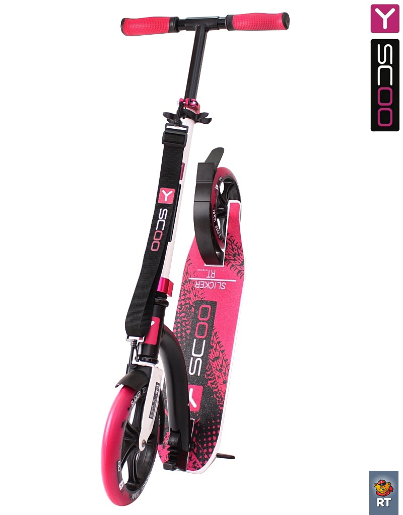 Самокат y-scoo rt 230 slicker new technology fuksia. Новое поколение самокатов Y-SCOO. NEW Technology 2016. Новые технологии в лидерах среди самокатов- Y-SCOO. Мы создали ручки на резьбе, чтобы они закручивались в руль и никогда не люфтили! Эргономика- 10 баллов. Новая устойчивая широкая складная подножка на пружине. Теперь в самокатах Y-SCOO 2 способа установки самоката на землю: на широкую складную подножку когда самокат разложен и на торец платформы, когда самокат сложен. Теперь самокаты Y-SCOO стоят на земле еще тверже чем прежде! Новый материал колес Y-SCOO. Матовый полиуретан- долговечность колес и высокое сцепление с дорогой! Мы впервые использовали этот высокотехнологичный новый материал. Новые двухцветные ручки стали очень яркими и привлекательными. Технология смешивания двухцветной резины создает очень красивый эффект двухслойности. Y-SCOO -бренд , доказавший свое превосходство, готов удивлять Вас снова и снова. . ВПЕРВЫЕ и только у самокатов Y-SCOO : международный патент-уникальная система складывания самоката “Lift Fold”-“НАЖМИ СЛОЖИ” поразит всех обладателей самокатов Y-SCOO. Очень простая и надежная система складывания самоката путем нажатия и поднятия кнопки-паза внутри трубы. Одновременно нажимая кнопку и поднимая ее вверх Вы опускаете ручку для того, чтобы сложить самокат. Таким же образом нажимая кнопку-паз разложите самокат. В один клик Вы сможете сложить самокат. Механизм утоплен в трубу- это надежно и безопасно при использовании. Легко и просто для переноски и хранения. Оцените это сами! По самым новейшим технологиям сделана покраска новых самокатов- она матовая и необыкновенно красивая. Переднее колесо- 230 х 33 мм. Заднее колесо –180 х 30 мм. Материал- матовый высокопрочный литой полиуретан(PU). Жесткость 82А. По всему диаметру колес- нестираемый принтовый рисунок. Скоростной высокоточный подшипник ABEC 7 Chrome. Облегченное пластиковое крыло над передним колесом. Ножной тормоз из высокопрочного сплава. Платформа из алюминия. Антискользящая поверхность. Грамотно продуманный размер платформы- на ней легко умещаются 2 ноги. Размер платформы 58 х 15 см. Алюминиевая ручка- телескопик меняется по высоте в 3 х положениях. РЕГУЛИРУЕМАЯ ВЫСОТА от 110/102/98 см. Надежный стальной эксцентрик фиксирует ручку на выбранной высоте. Эксцентрики покрыты анодным слоем и это очень украшает самокат. Такого же качества нижний зажим с 2-мя прочными болтами. Яркие цветные детали самоката с переливающимся цветным покрытием сделаны способом анодирование и красиво переливаются на солнце. Цветное покрытие сделано способом анодирование –процессом специальной обработки для создания дополнительного слоя защиты металла. Анодный слой помогает предотвратить коррозию, добавляет твердость поверхности металла и очень красиво переливается на солнце. Большие резиновые ручки- мягкие и эргономичные. Новая технология смешивания 2 слоев создает иллюзию объема ручек. В производстве использованы новейшие материалы высочайшего качества. Мы стремились создать продукт ПРЕМИУМ класса- лучшие самокаты. Верим, что нам это удалось. В комплекте - ремень для переноски самоката. Новая широкая складная подножка. Вес самоката : 4, 9 кг. Вес коробки: 5, 9 кг. Размер коробки : 84х15, 5х38см. Максимальная нагрузка 100 кг. Рекомендуется для детей от 8 лет. ! Прочие Торговая Марка Y-SCOO ШтрихКод 2018412790240 Базовая единица шт Размер (см) 93х15х
