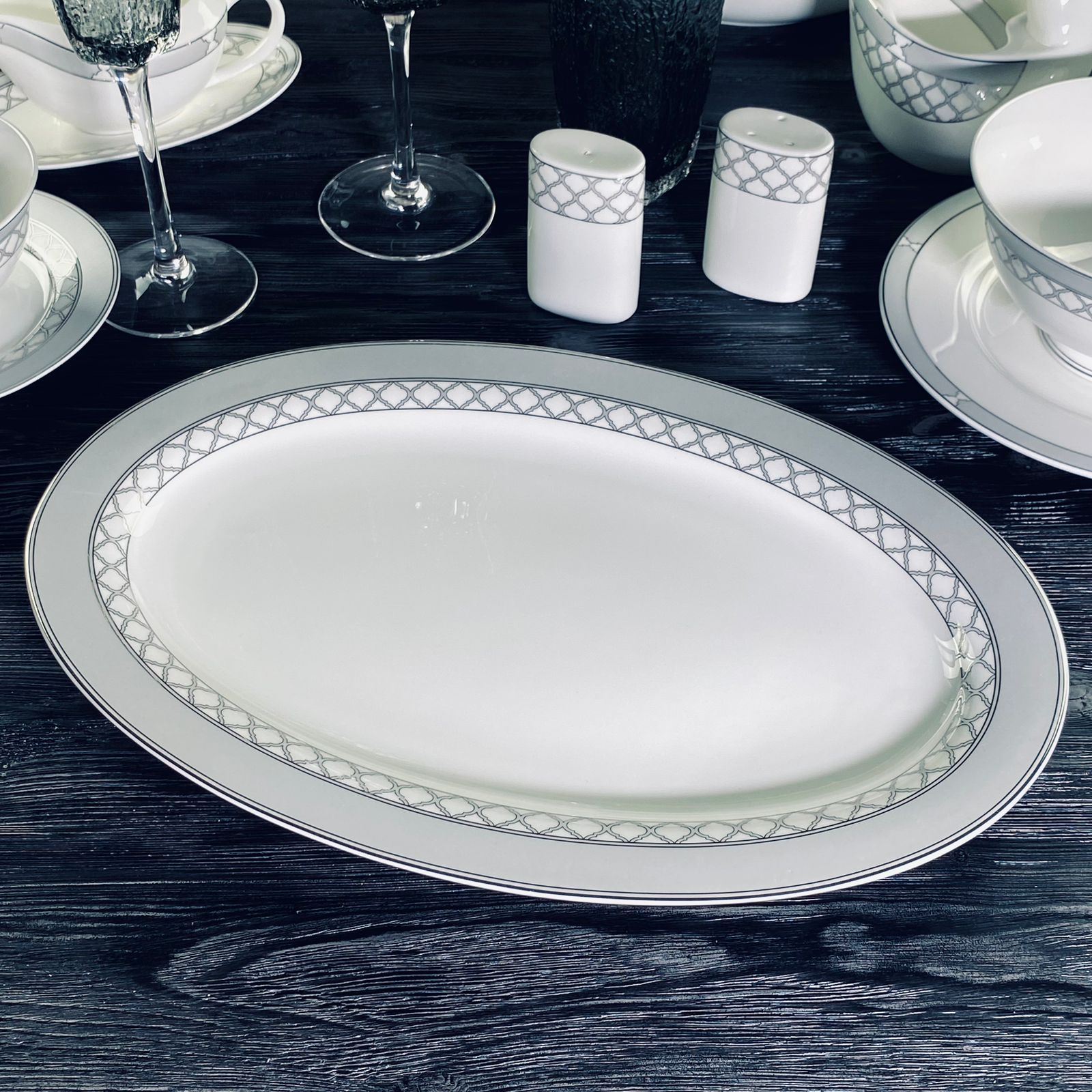 Овальное блюдо 35,5 см версаль серебро в под.уп. костяной фарфор
