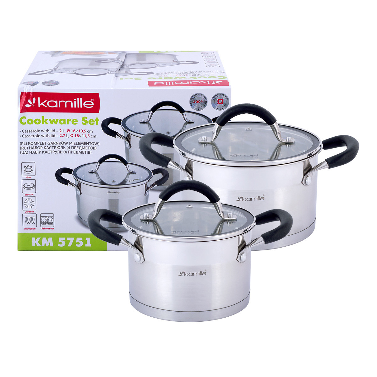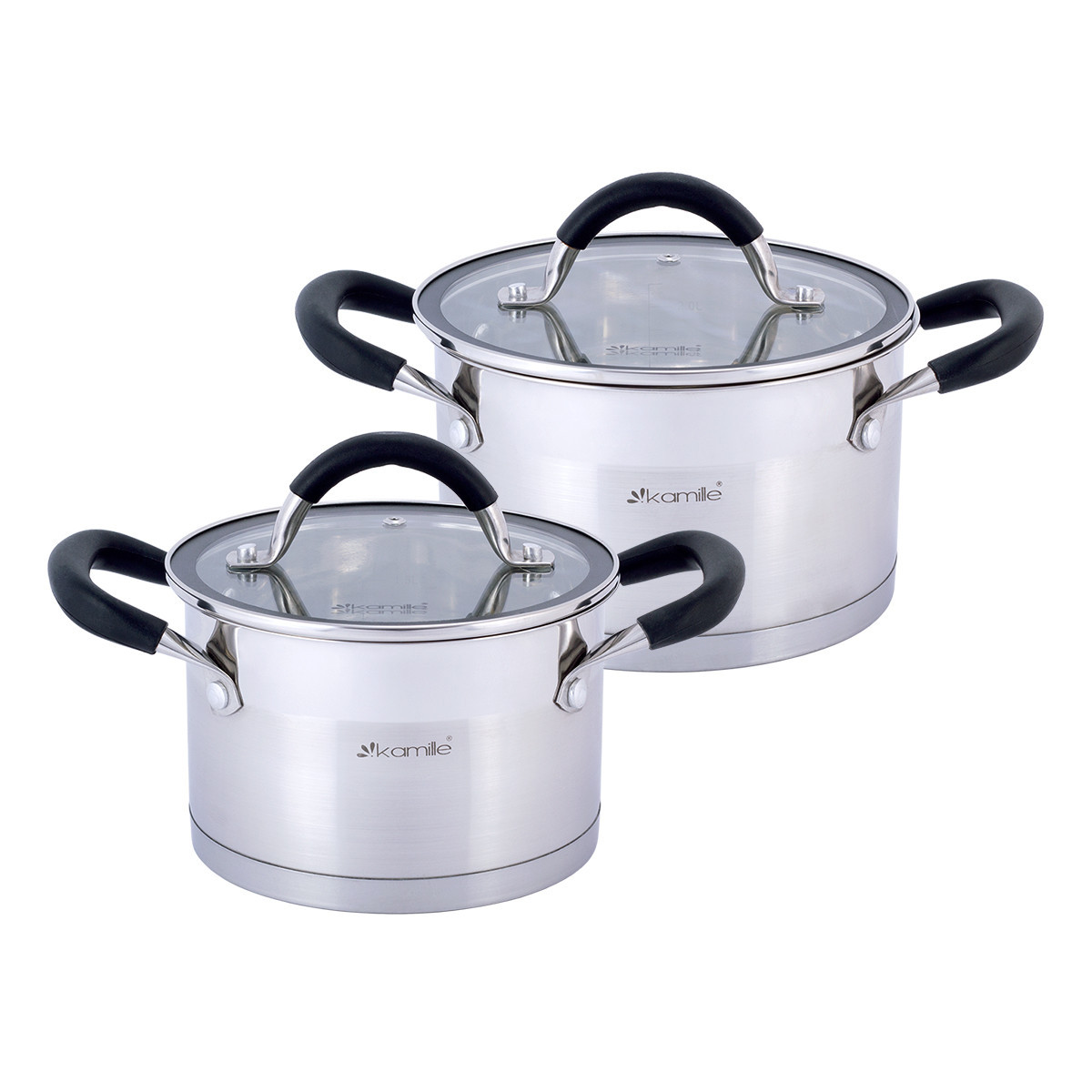 Набор кастрюль Kamille из нержавеющей стали 4 предмета для индукции и газ