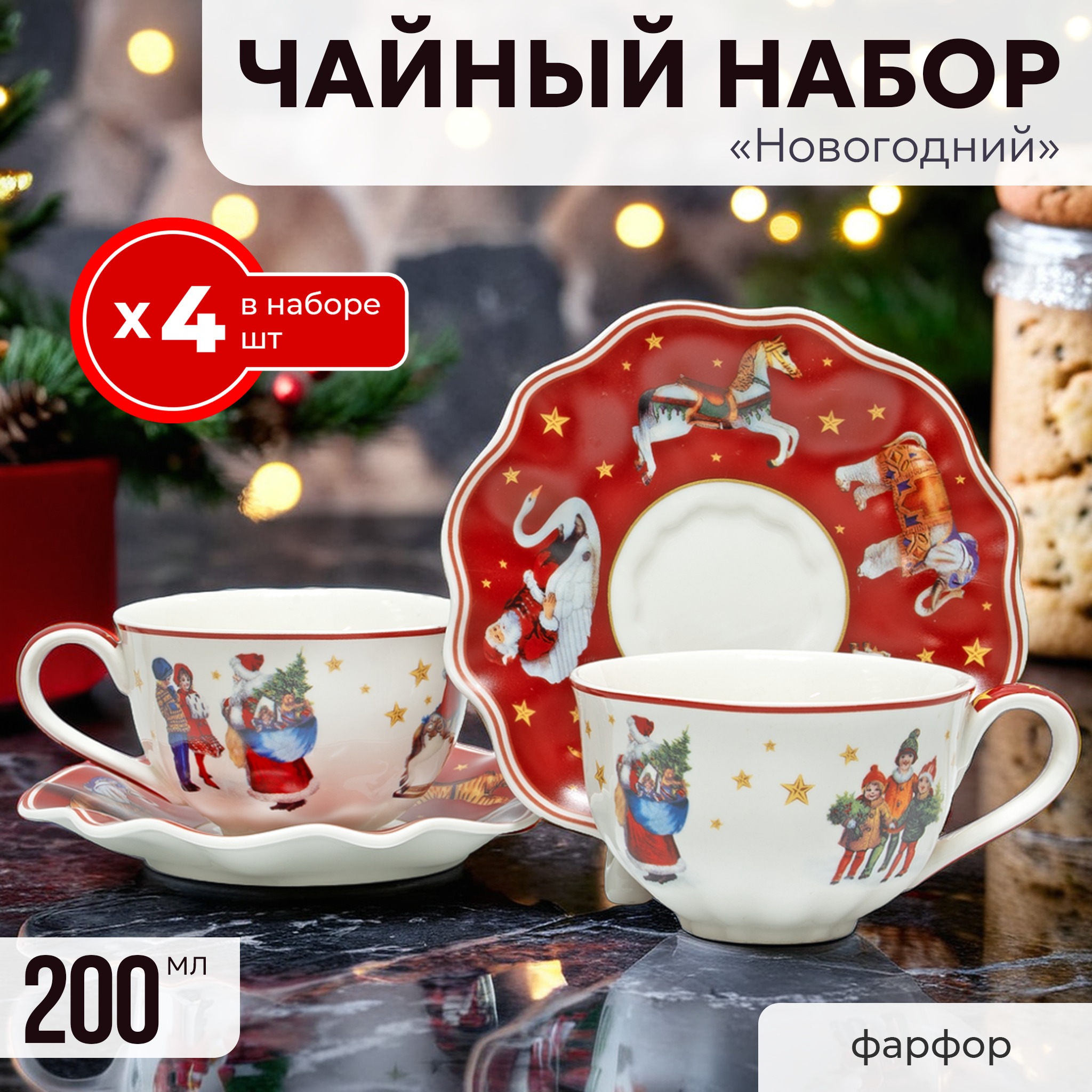 Чайный набор на 4 персоны 200 мл новый год фарфор Lenardi
