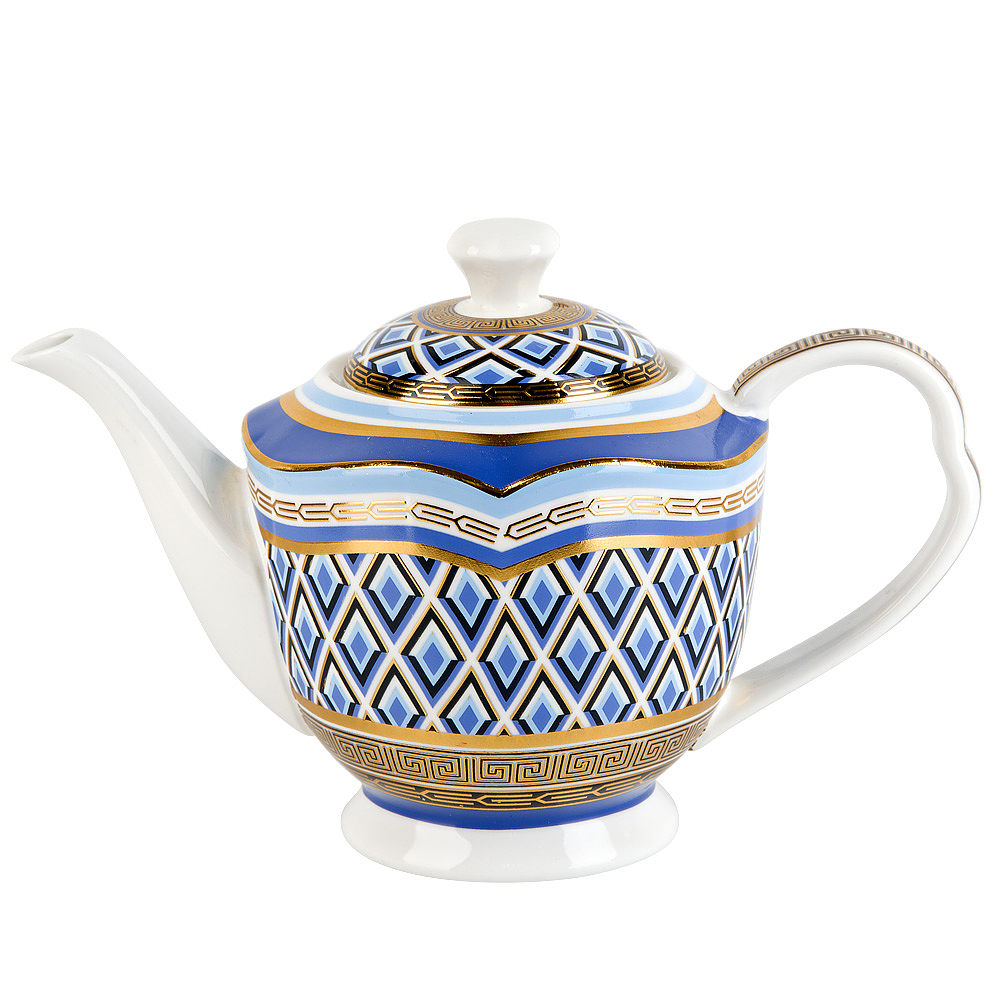 1шт чайник заварочный "golden blue" 600мл (фарфор) (подарочная упаковка). Коллекция посуды из фарфора Golden Blue - это идеальный выбор для тех, кто ценит стиль и элегантность. Коллекция представлена в бело-голубых цветах с золотым декором, что придает ей изысканность и роскошь. Каждый предмет этой коллекции был тщательно разработан и изготовлен с использованием высококачественных материалов и с большим вниманием к деталям. Стиль Арт-деко, который вдохновил создателей этой коллекции, отлично подходит для современных интерьеров, добавляя им шарма и оригинальности. Однако, благодаря своей универсальности, коллекция Golden Blue также подойдет для классических интерьеров, создавая гармоничное сочетание старины и современности. Коллекция Golden Blue включает в себя различные предметы декора и посуды, чтобы удовлетворить все ваши потребности. Здесь вы найдете вазы, чайные и кофейные пары, блюда и множество других предметов, которые помогут вам создать неповторимый стол и впечатлить своих гостей. Каждый предмет этой коллекции упакован в подарочную упаковку, что делает их идеальным подарком для близких и друзей. Независимо от того, нужны ли вам предметы для повседневного использования или для особых случаев, коллекция Golden Blue гарантирует вам высокое качество и элегантный дизайн. Итак, если вы ищете посуду, которая сочетает в себе стиль, качество и элегантность, коллекция Golden Blue - ваш идеальный выбор. Позвольте этой коллекции придать вашему интерьеру и вашим приемам праздничную атмосферу и выразить вашу индивидуальность и вкус. Чайник Golden Blue v=600мл (фарфор) (подарочная упаковка) Упаковка: Цветная коробка Объем, мл: 600 Цвет основной: Синий Комплектация: Чайник - 1 шт Использование в СВЧ: Нет Мытье в посудомоечной машине: Нет Рисунок: Геометрия Форма: Фигурная  развернуть описание ▼