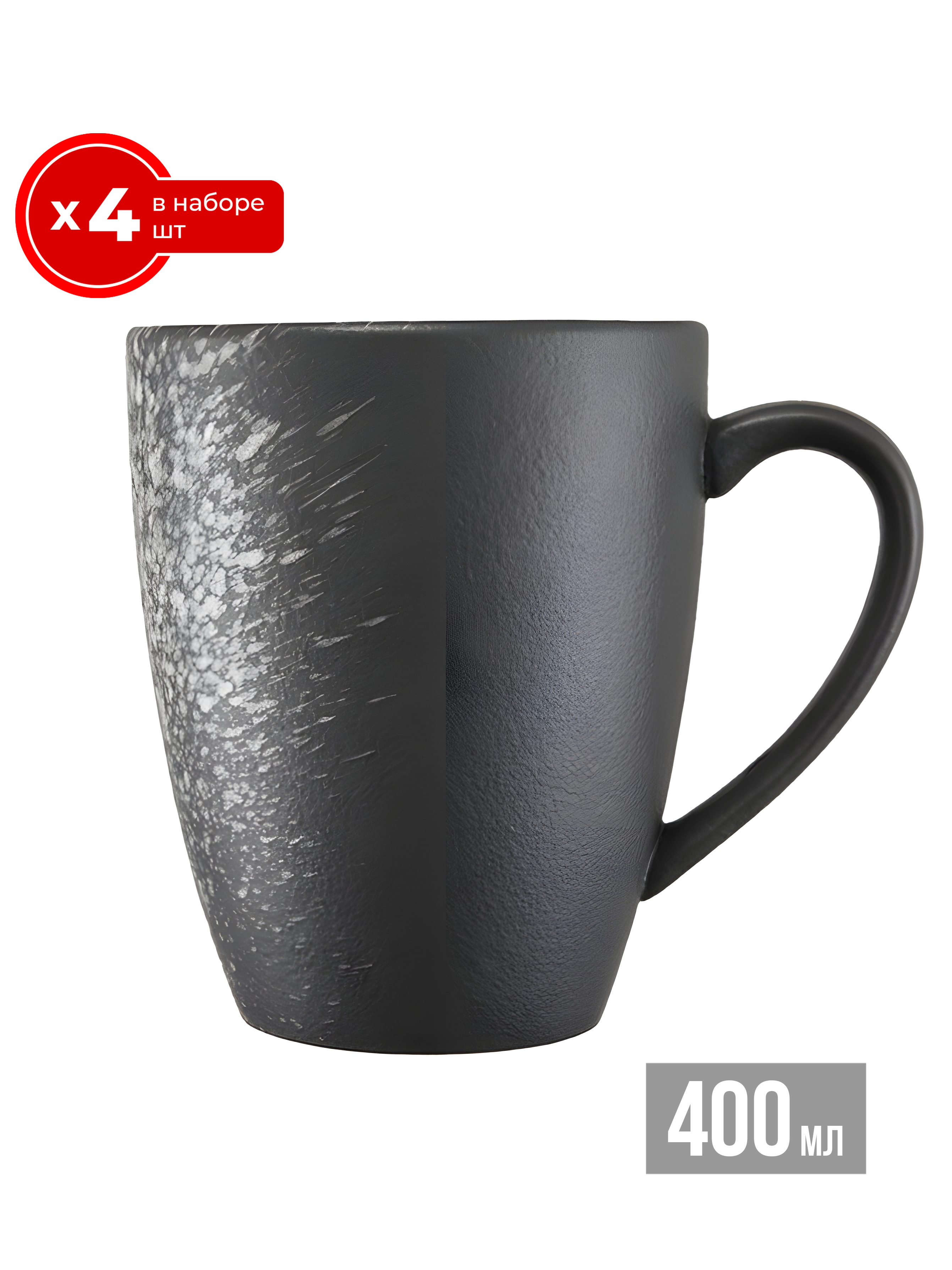 Набор кружек 4 шт. 400 мл, фарфор P, черная, в белую крапинку, Caviar Galaxy