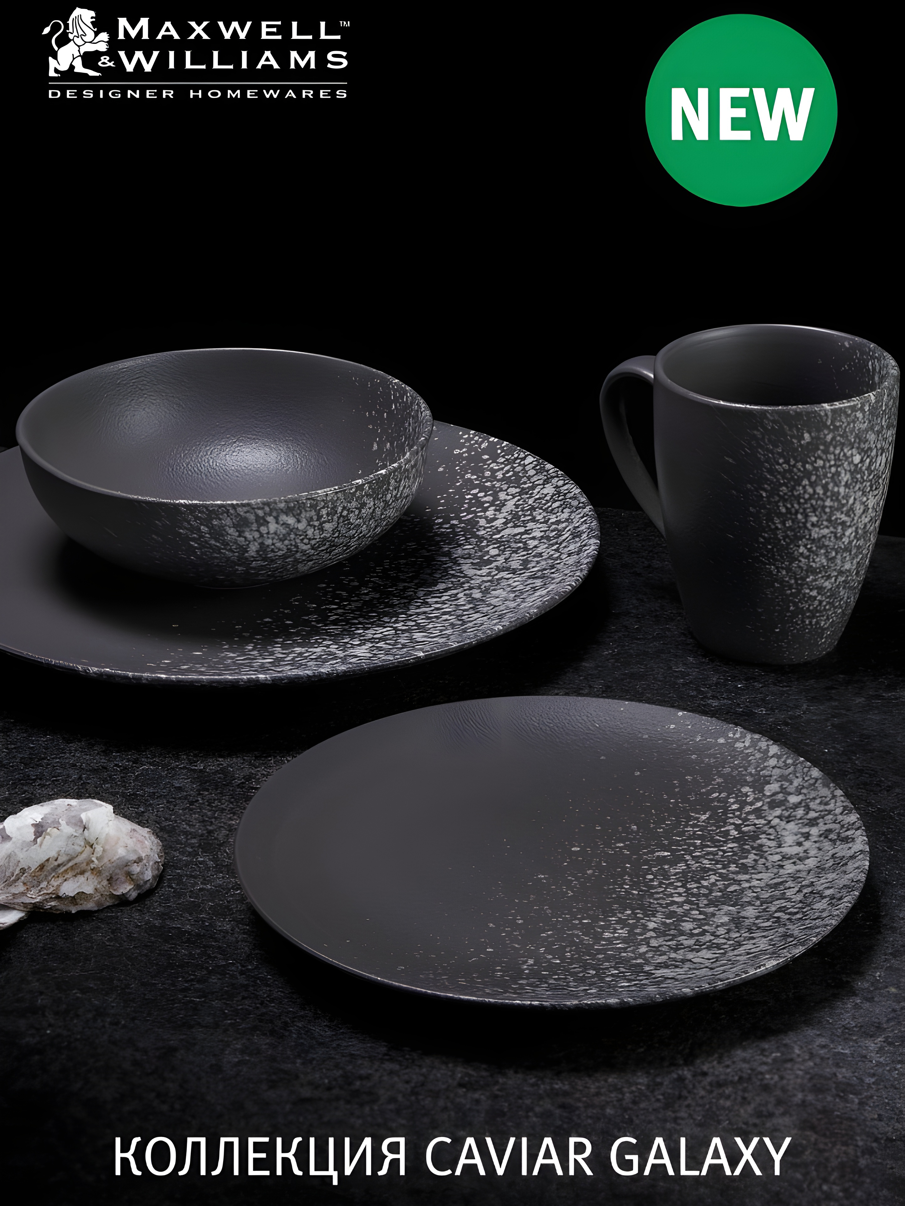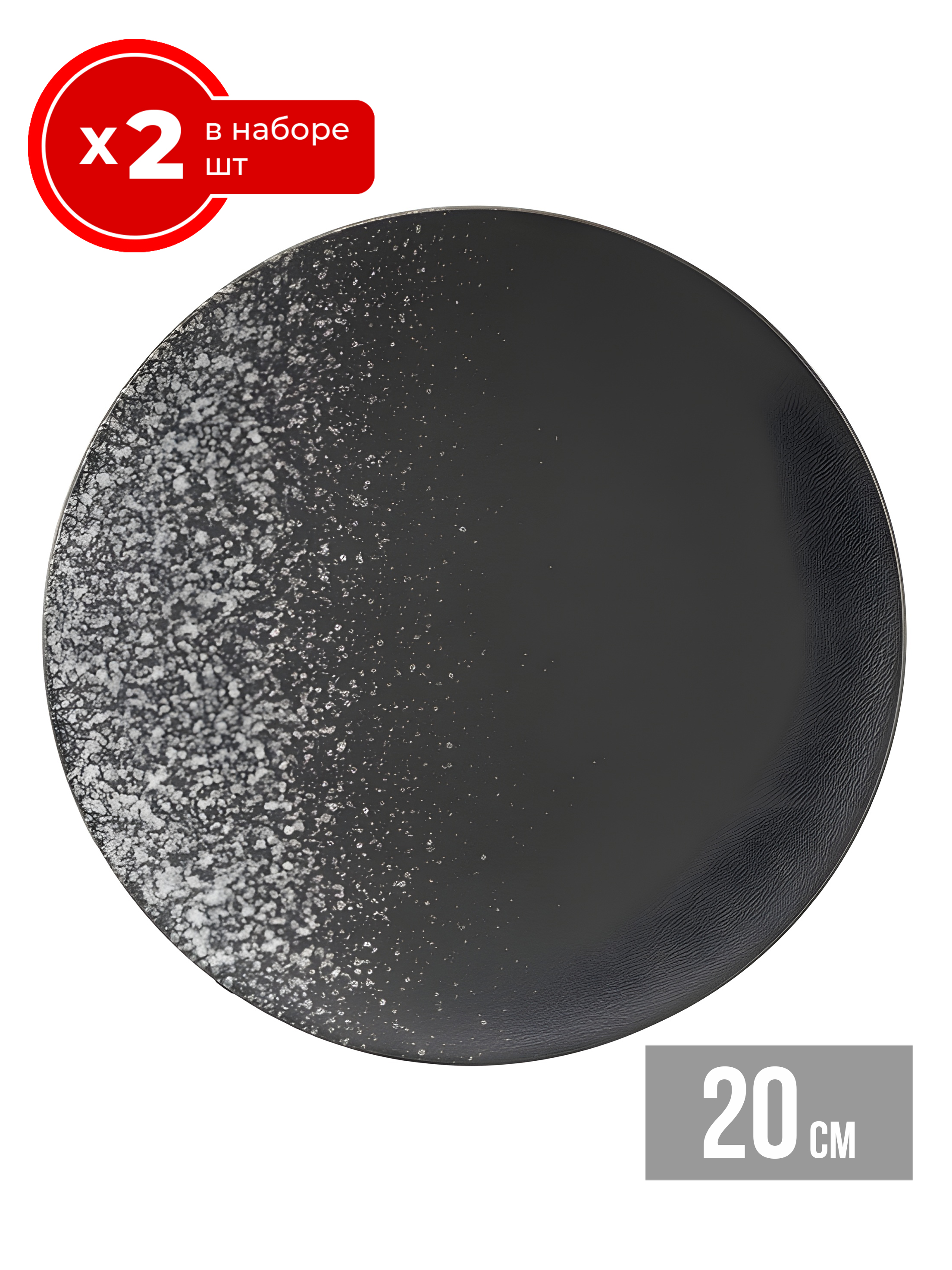 Набор закусочных тарелок 2 шт. 20 см, фарфор P, черная, в белую крапинку, Caviar Galaxy
