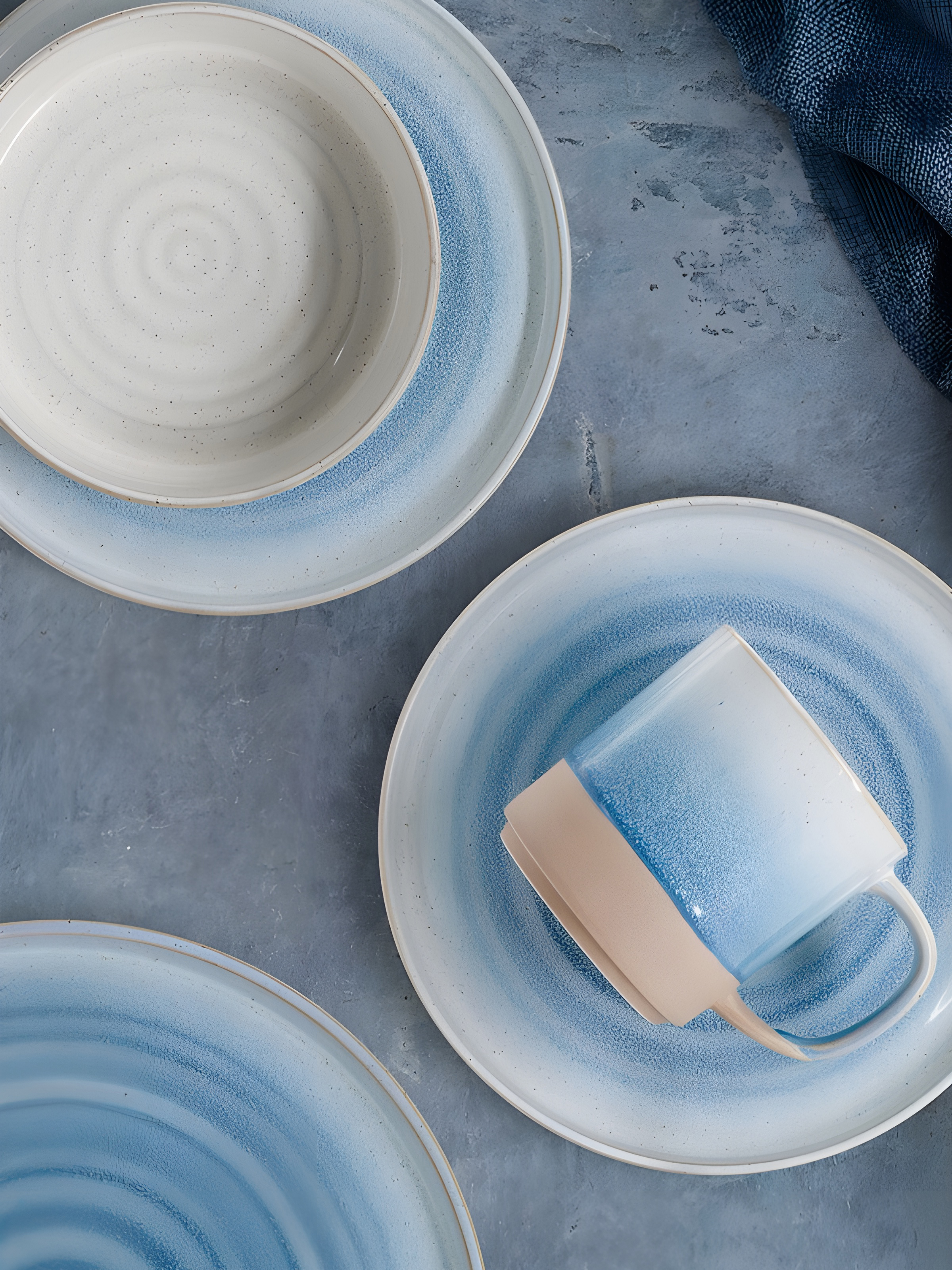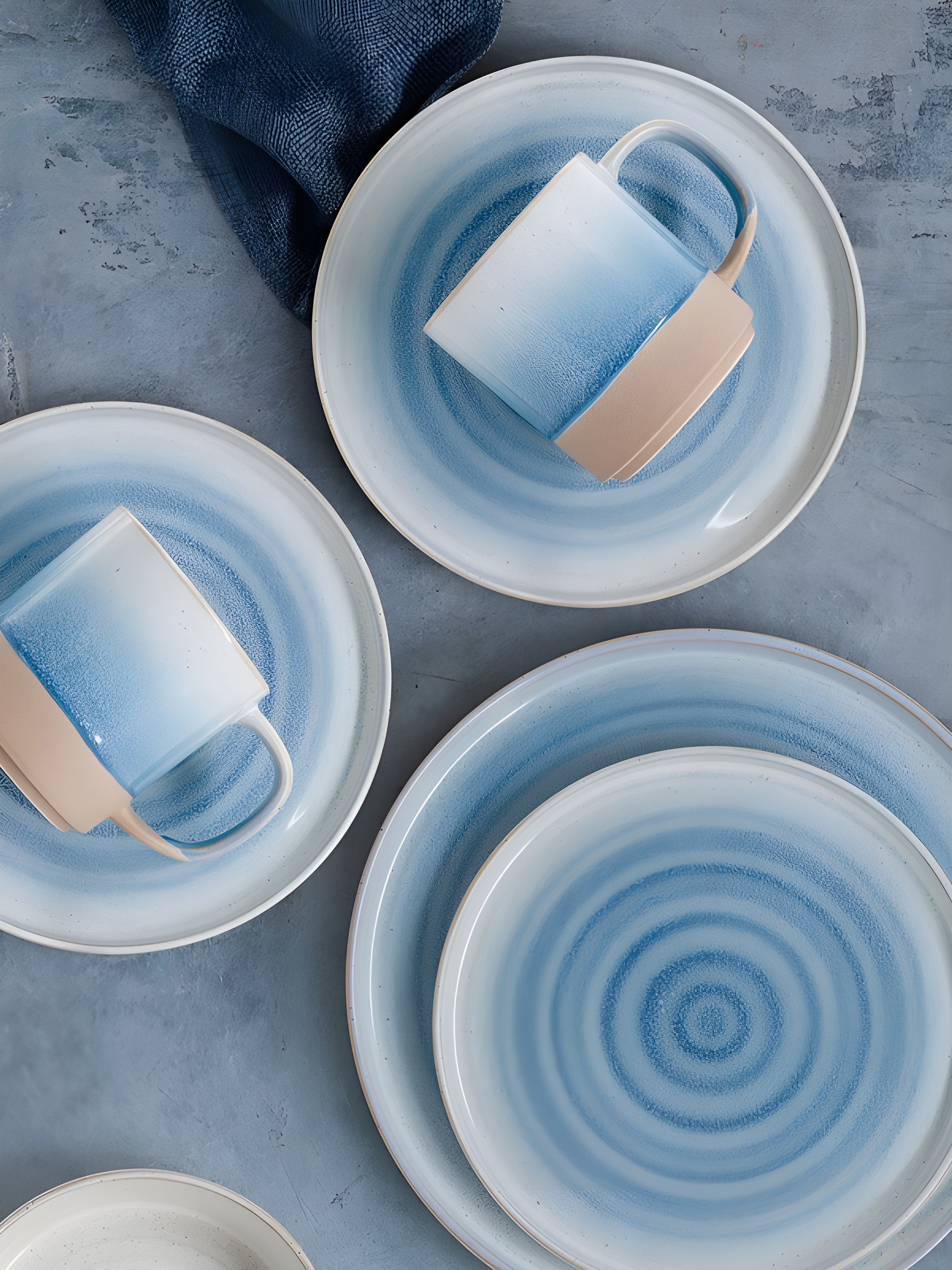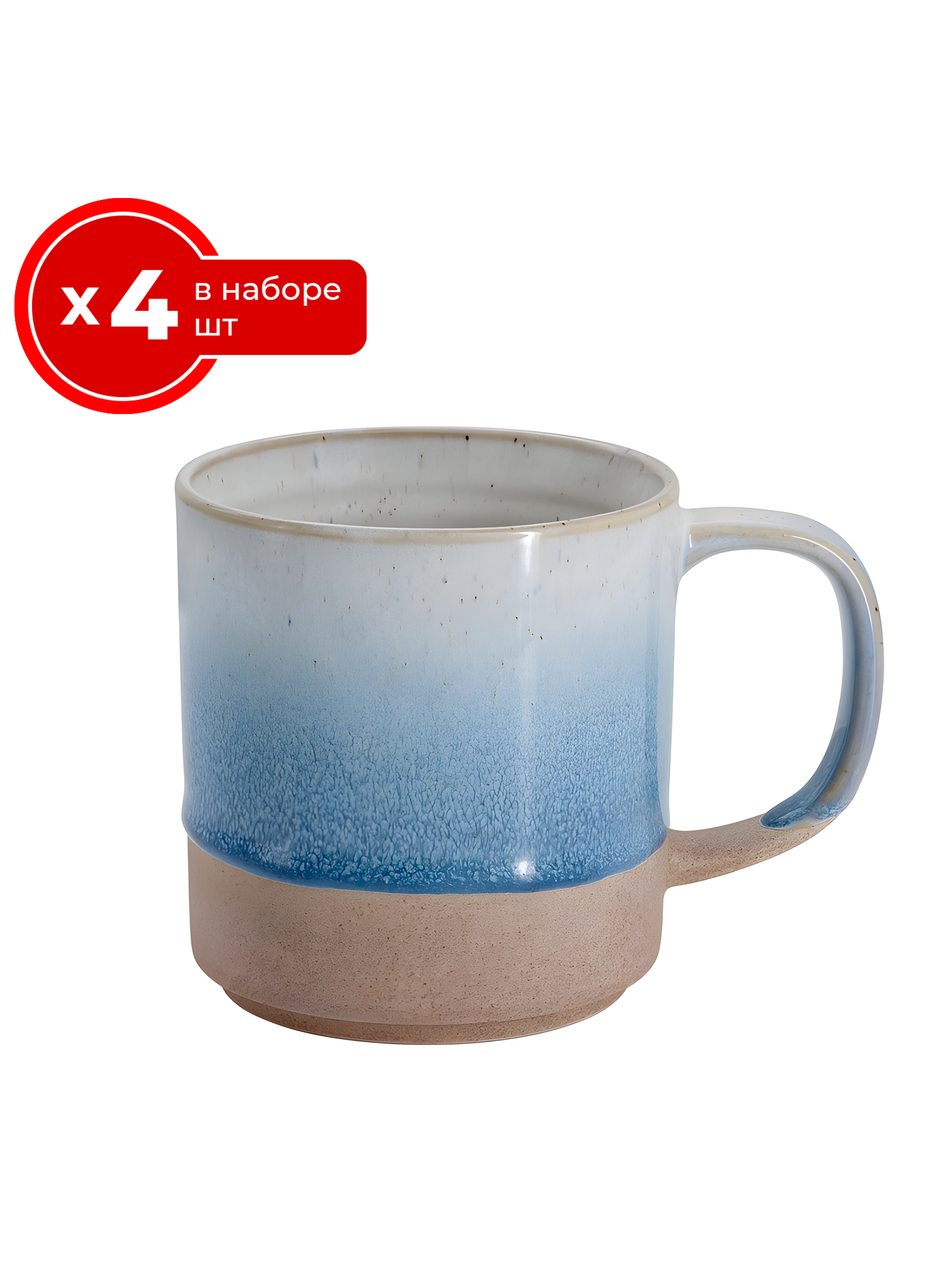 Набор кружек 4 шт., 370 мл, керамика, бежево-голубая, в крапинку, Azurro