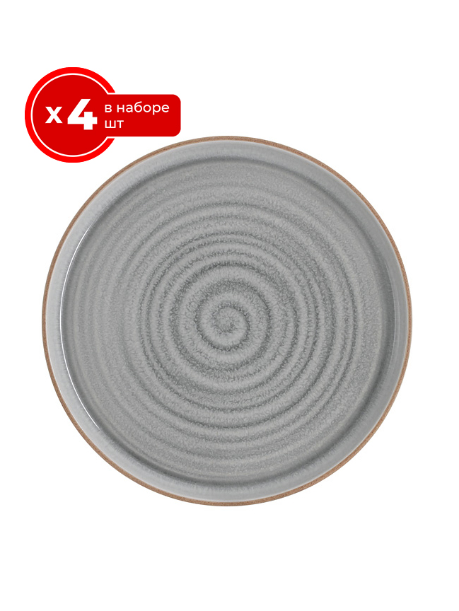Набор закусочных тарелок 4 шт., 21 см, керамика, серая, спираль, Dallas