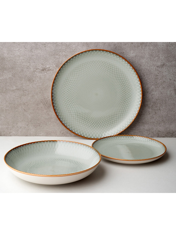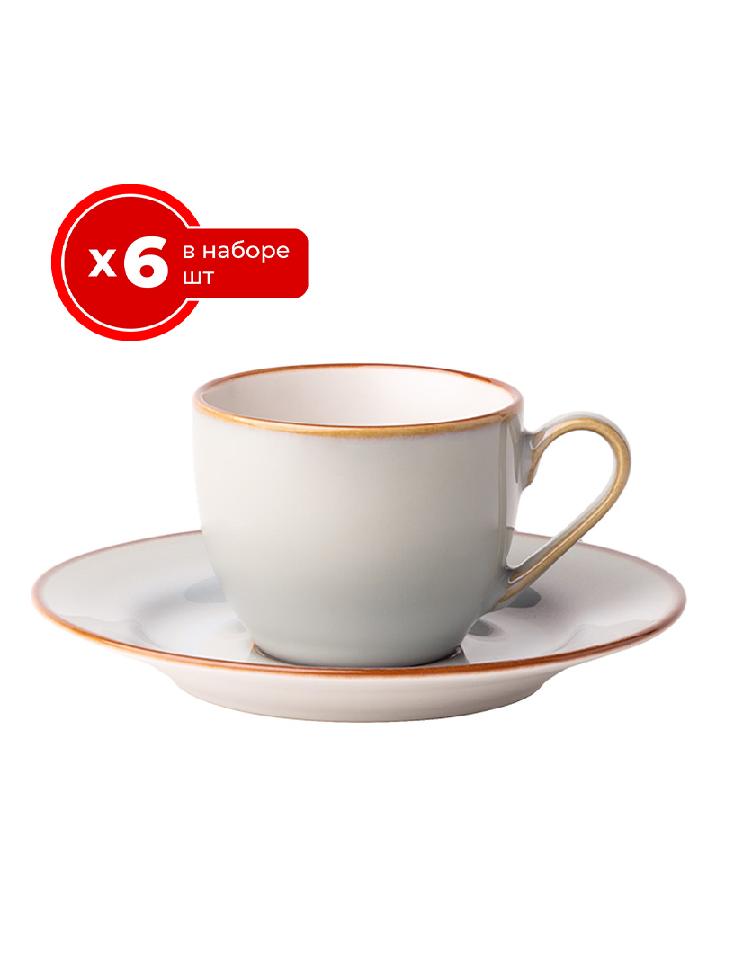 Кофейный набор на 6 персон 90 мл, керамика, серо-бежевая, с коричневым кантом, Mandala