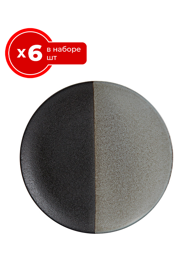 Набор закусочных тарелок 6 шт. 20 см, фарфор P, черно-серая, в крапинку, Umi
