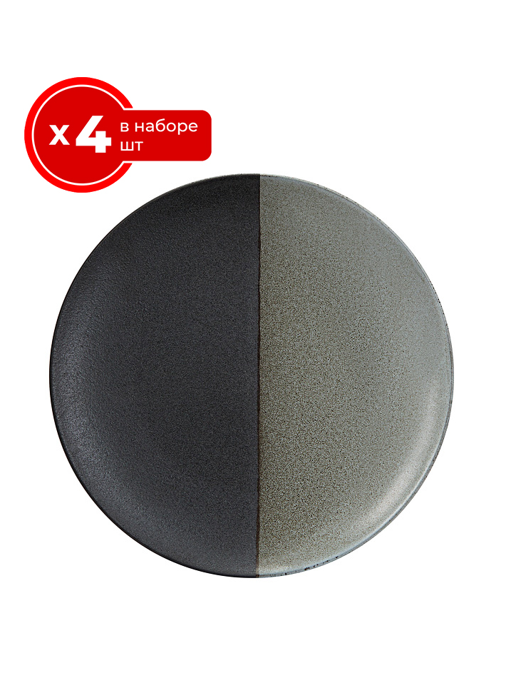 Набор обеденных тарелок 4 шт. 27,5 см, фарфор P, черно-серая, в крапинку, Umi
