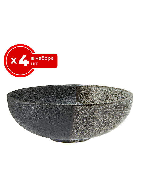 Набор салатников 4 шт. 15,5х6 см, 500 мл, фарфор P, черно-серый, в крапинку, Umi
