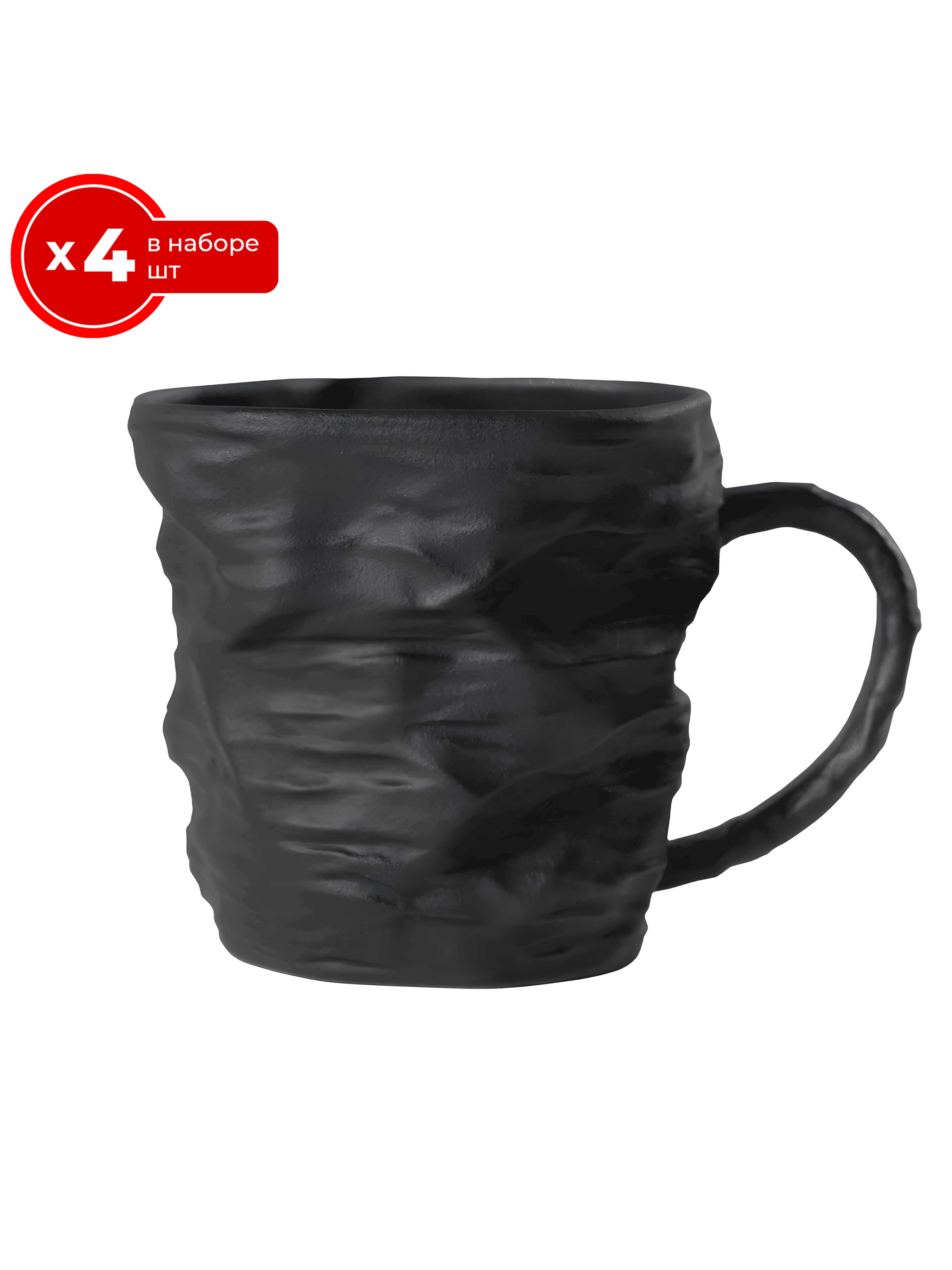 Набор фарфоровых кружек 4 шт. 350 мл для чая и кофе эфиопия, фарфор, цвет черный