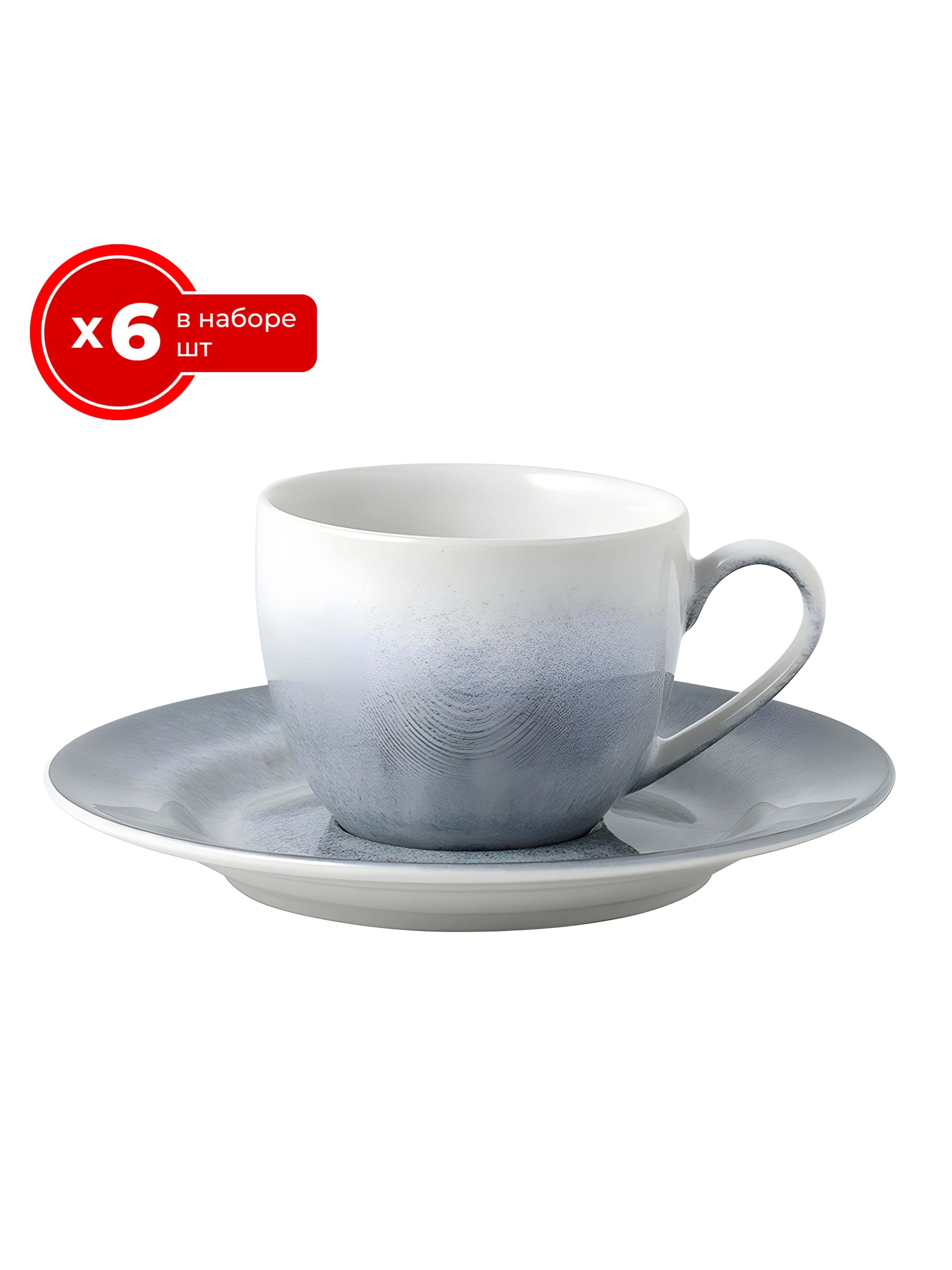 Кофейный набор на 6 персоны 90 мл, керамика, серо-голубая, Vulcano