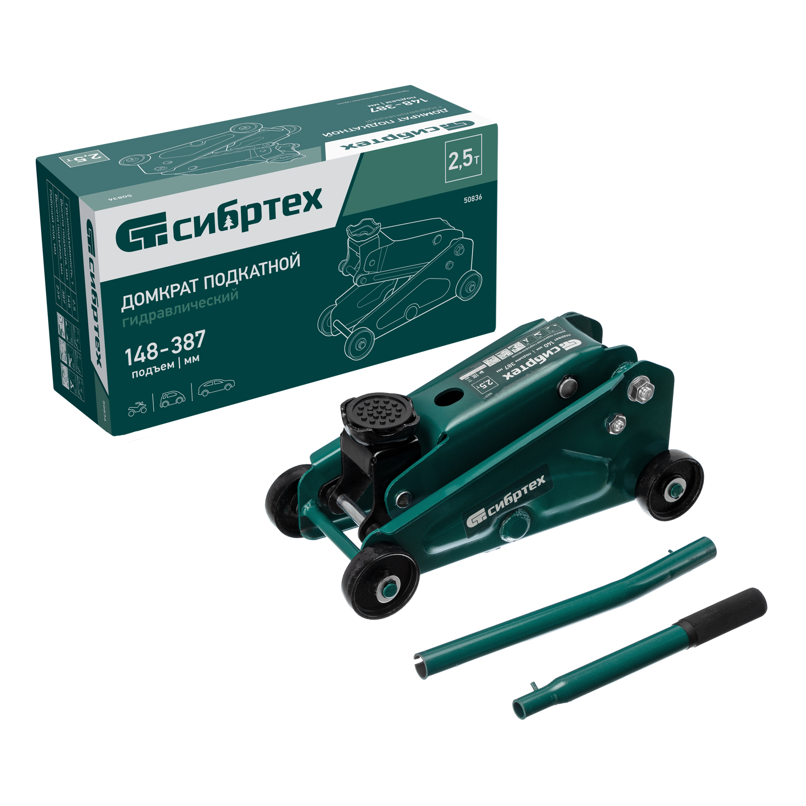 Шт домкрат гидравлический подкатной, 2,5 т, 148-387 мм сибртех. Бренд: Сибртех Материал корпуса: сталь Страна производства: Китай Высота подхвата, мм: 148 Высота подъема, мм: 385 Длина в упаковке, мм: 390 Ширина в упаковке, мм: 210 Вес (брутто), кг: 9.6 Домкрат: 1 шт Рукоятка домкрата: 1 шт Гидравлический подкатной домкрат Сибртех 50836 с высотой подхвата 140 мм предназначен для подъема грузов массой до 2,5 т на высоту до 387 мм. Применяется для обслуживания автомобилей со стандартным клиренсом. Компактный домкрат подходит для самостоятельного использования автовладельцами. Преимущества Безопасность — клапан сброса избыточного давления защищает домкрат от перегрузки, предотвращая подъем груза массой более 2,5 т. Маневренность — благодаря поворотным колесам домкрат можно быстро подвести под груз. Небольшие габариты — подъемное устройство можно разместить в багажнике автомобиля.  развернуть описание ▼